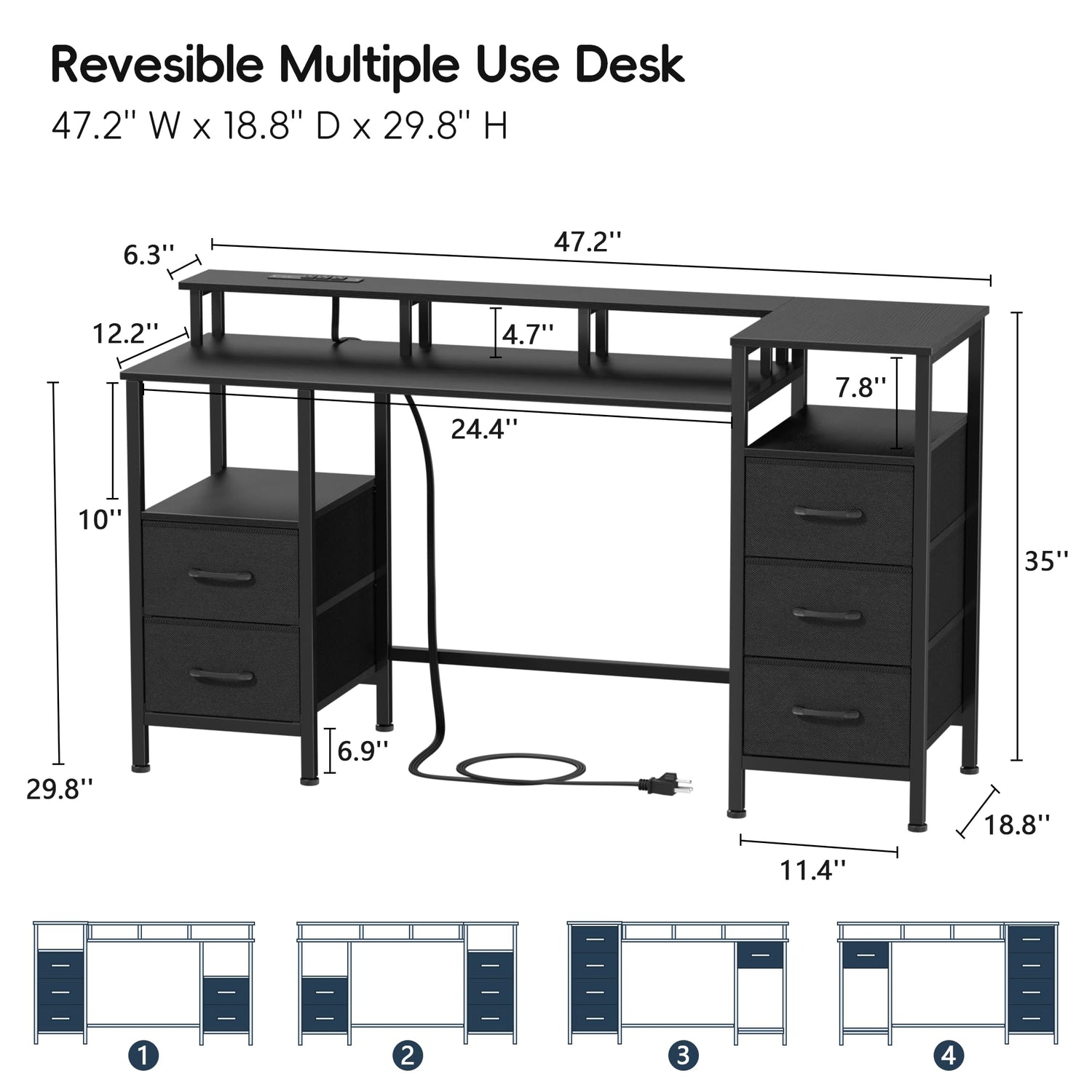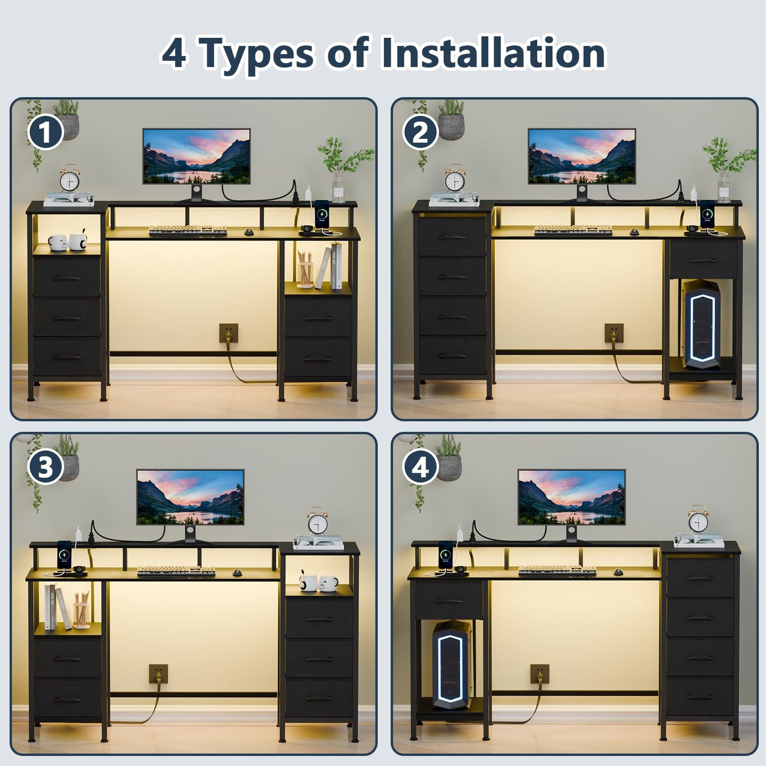 - Revesible Multiple Use Desk: Create a multifunctional workstation that can be used as a writing or study desk as well as for gaming. Full monitor stand reserves more space on your desktop. Raise your screen to eye level and take the strain off your neck and back. You can try different drawer mounting orientations (left or right, above or below) to customise the storage space to your needs.