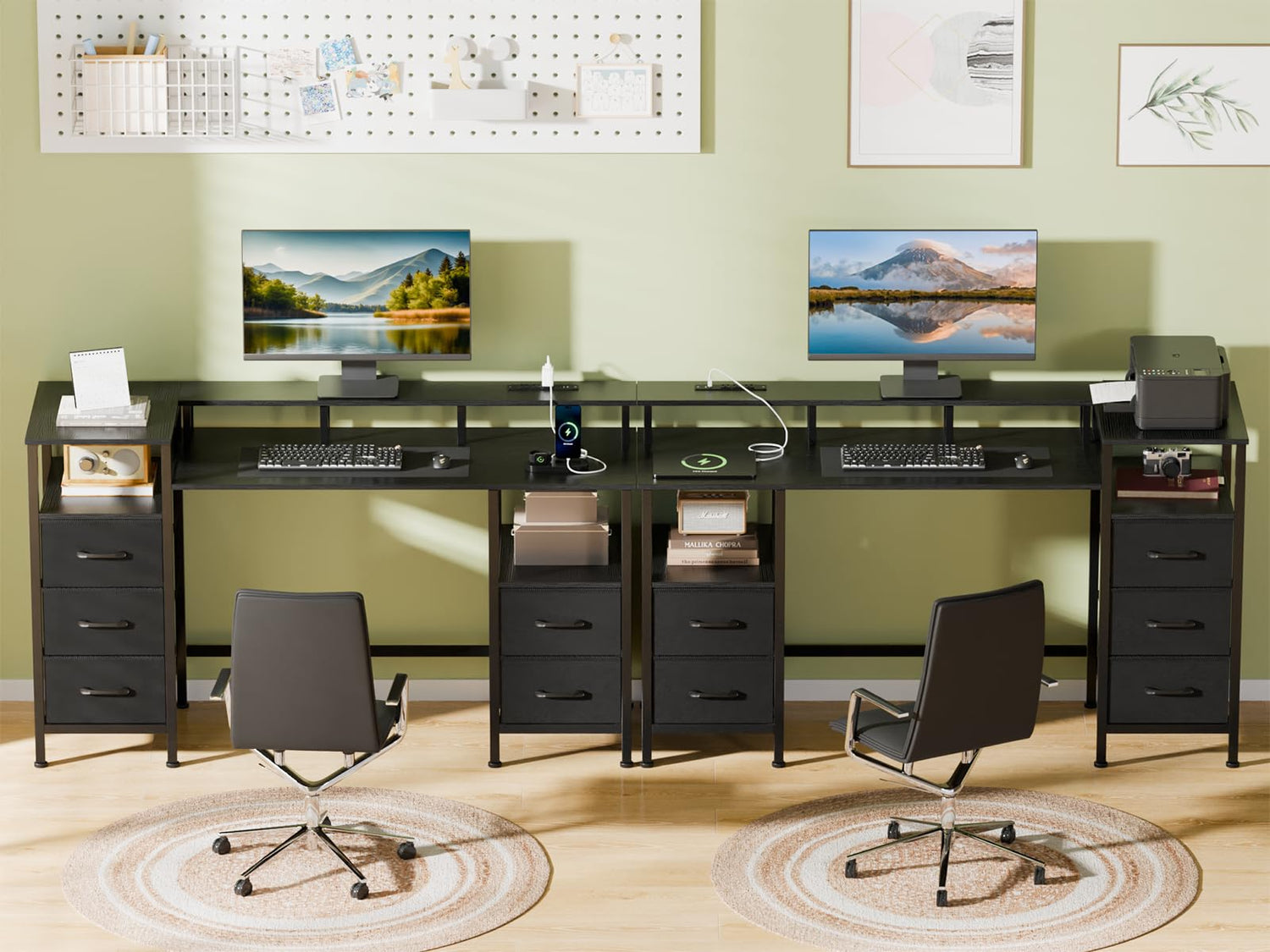 - Desk with Charging Station: The 47 inch long work desk equipped with 3 power outlets and 2 USB charging ports for your electronic devices, the home office desk makes it easy and convenient to charge your notebook computer, smartphone, gaming device or Bluetooth device.
