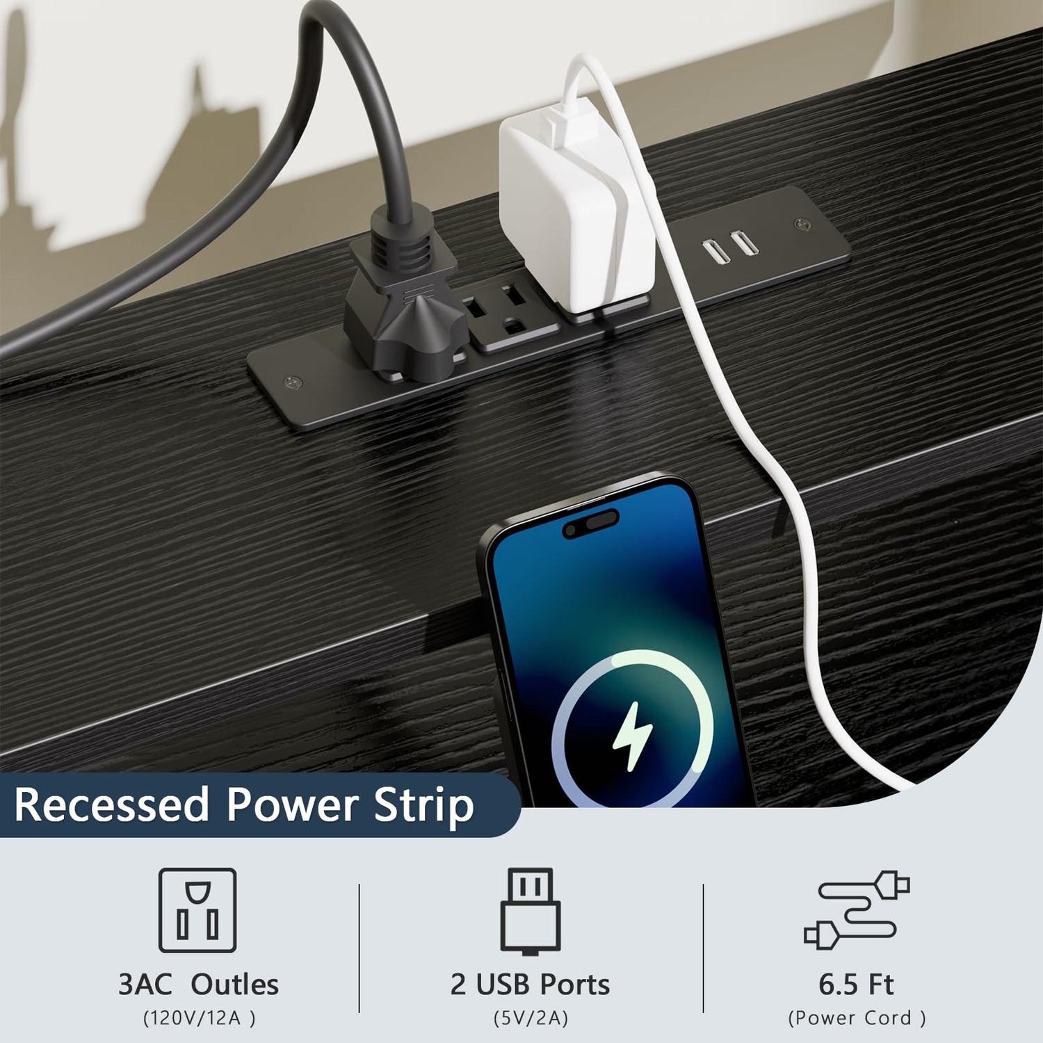 - Desk with Charging Station: The 55 inch long work desk equipped with 3 power outlets and 2 USB charging ports for your electronic devices, the home office desk makes it easy and convenient to charge your notebook computer, smartphone, gaming device or Bluetooth device.