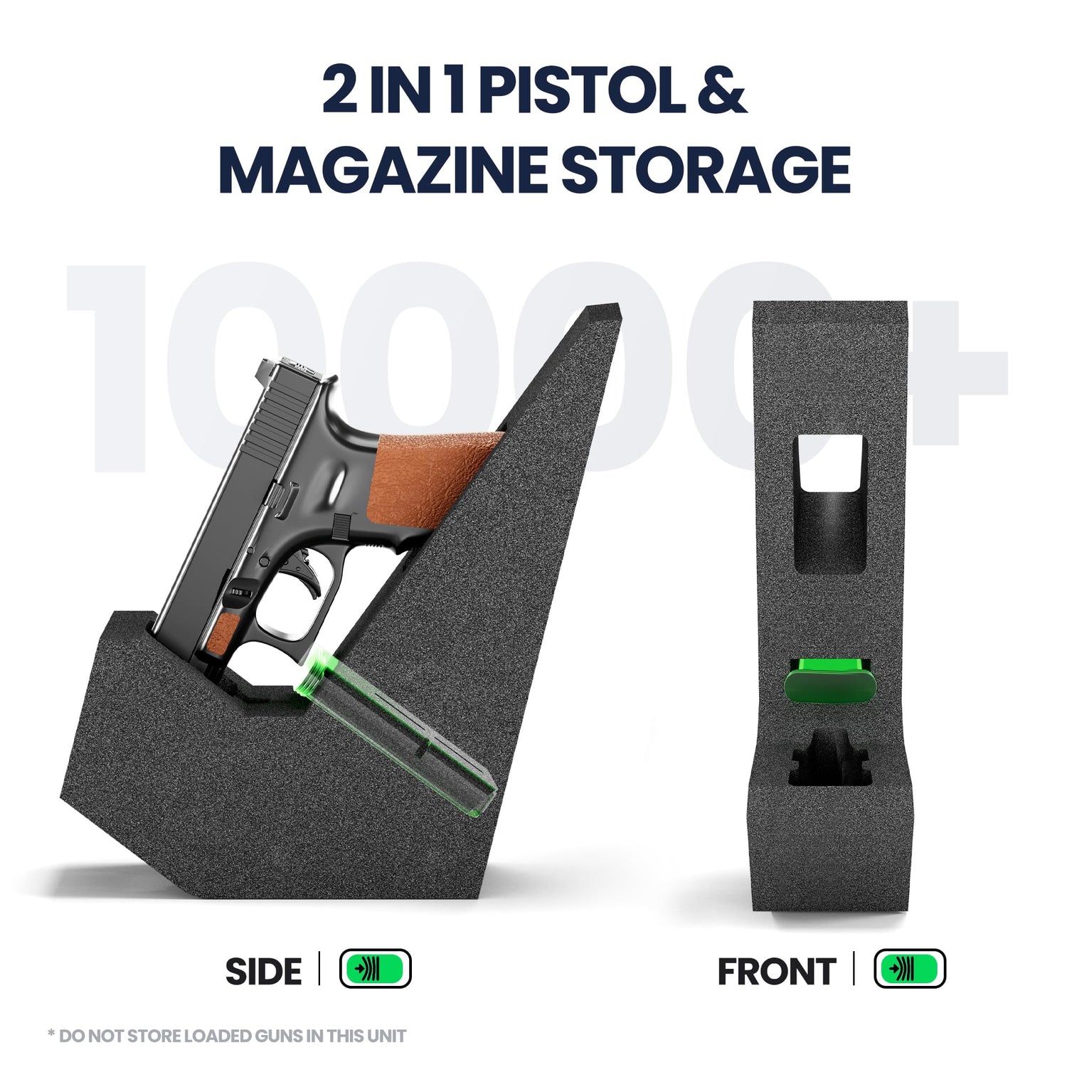 - LED Light & Silent Mode: The internal LED lights up automatically when the nightstand gun safe is opened, providing easy access in the dark. The silent mode allows you to disable beeps, ensuring discreet firearm retrieval during emergencies