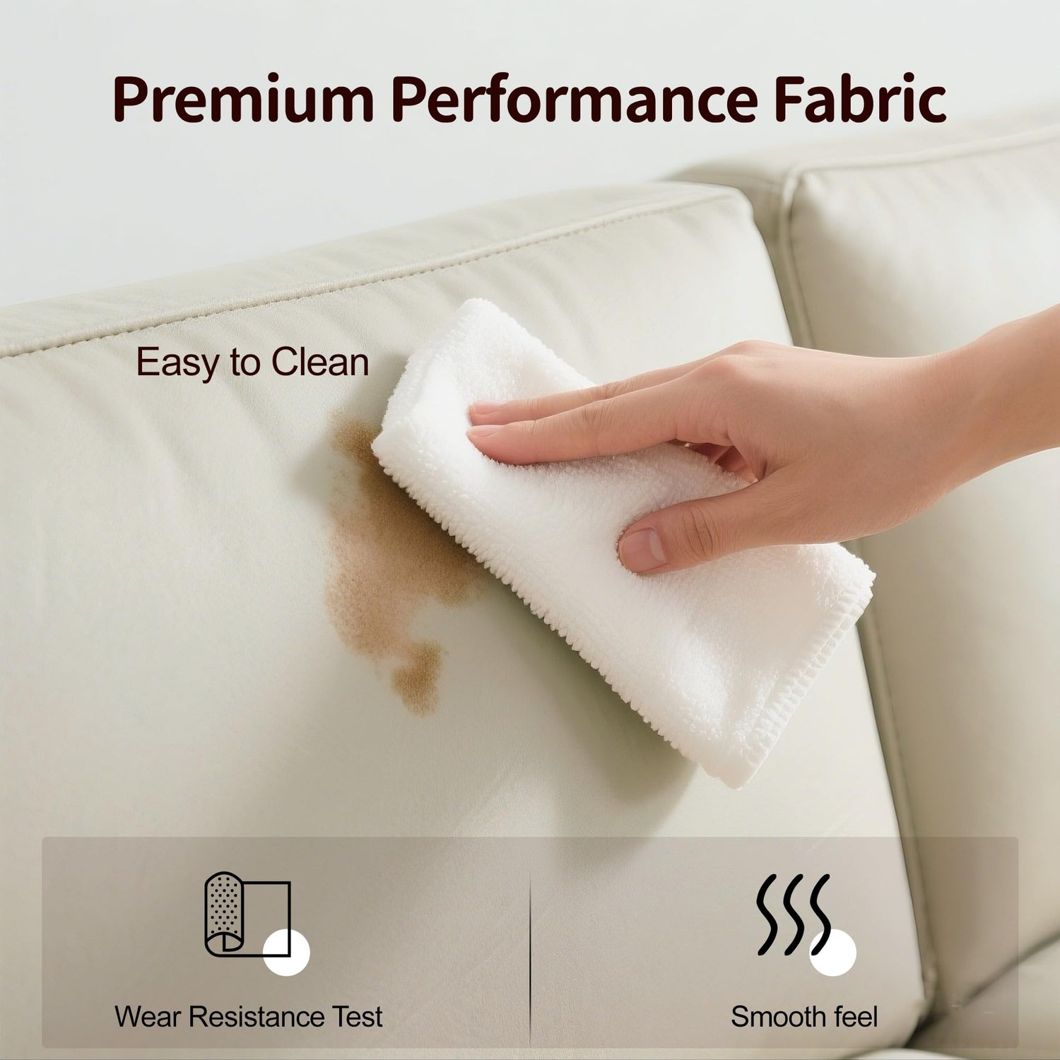 - Premium Comfort: Our recliner sofa features high-density sponge padding that provides exceptional full-body support. Besides, it is also upholstered in high-quality performance fabric, the material combines a soft, refined texture with elegant aesthetics. This durable, tightly-woven fabric resists tearing and maintains its integrity, making it an ideal choice for living room furniture. Offering greater durability and comfort than standard recliners for year-round use.