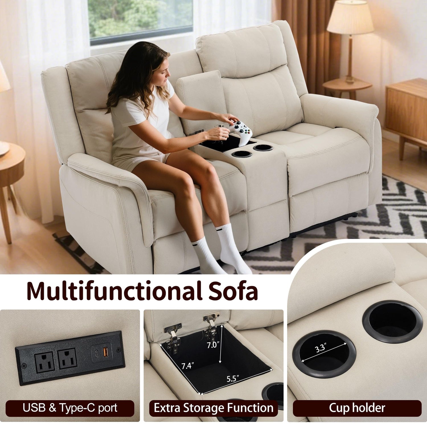 - Convenience Useful: The love seat features a convenient flip-top storage compartment at the center, neatly organizes snacks, remotes, and game controllers - no more cluttered side tables, maximizing every inch of your sofa space. Dual cup holders built into the armrests hold your favorite beverages during movie marathons or gaming sessions, and the integrated charging ports keep your devices powered up. Every detail is designed for uninterrupted comfort and convenience.