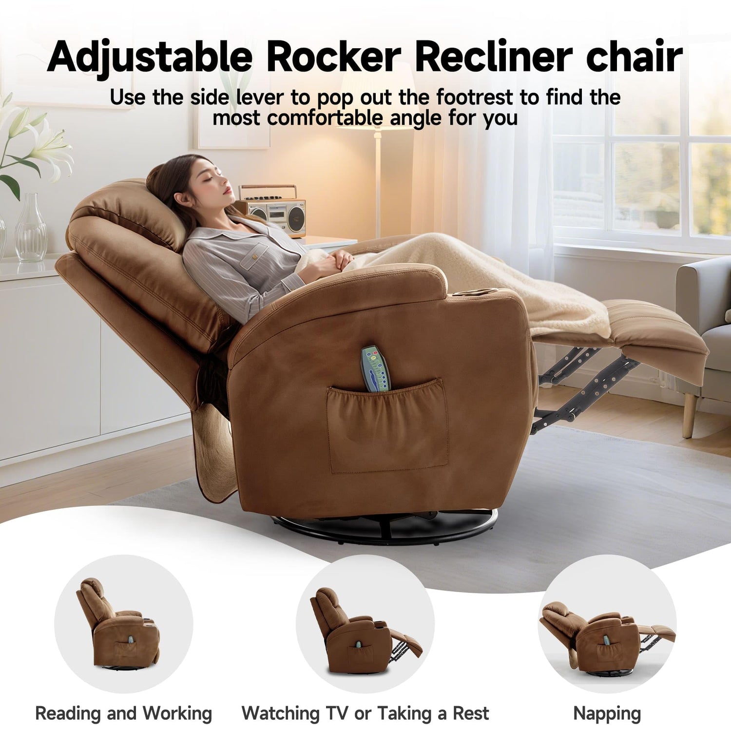 Korser Recliner Chair, Rocking Chair with Massage and Heat, 360° Swivel Recliner Chairs for Adults, Rocker Manual Recliner with Remote Control and Cup Holder for Living Room, Bedroom, Nursery