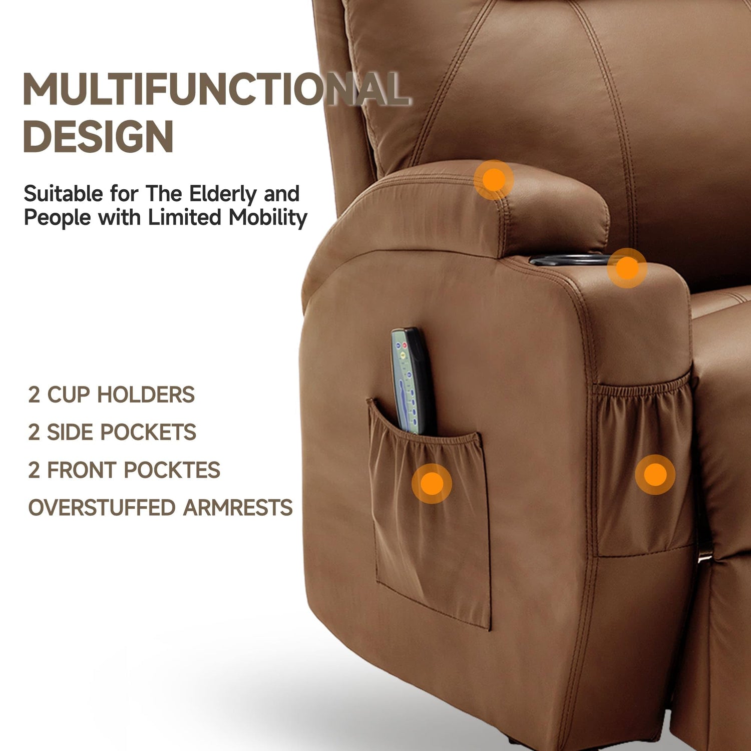 - Ample Storage: The recliner chair is designed for your convenience. Featuring four side pockets and dual cup holders, which can provide ample storage for your essentials, making it perfect for relaxing with a book, watching a movie, or enjoying a drink. Recliner cup holders are strategically placed for easy access to your beverages. The cleverly designed storage solutions enhance usability, ensuring everything remains neatly arranged and accessible as you indulge in your moments of relaxation.