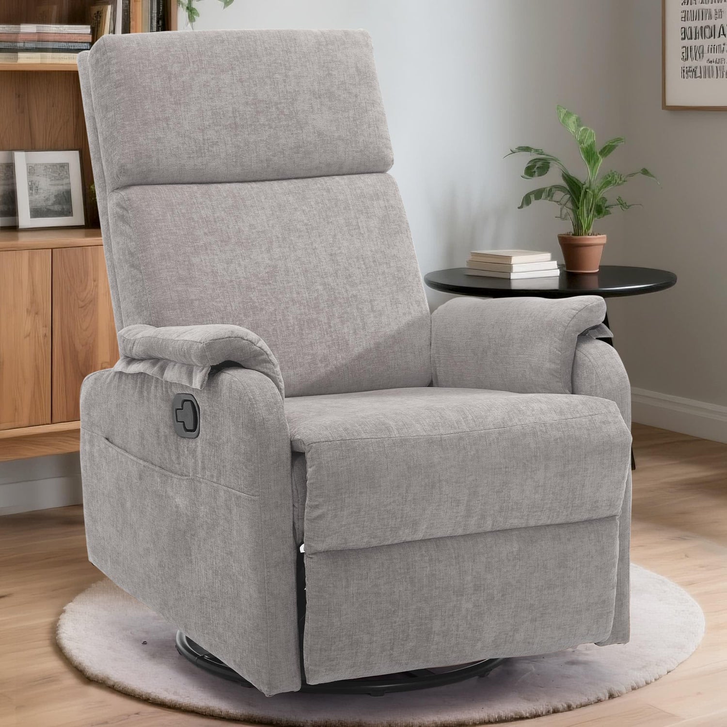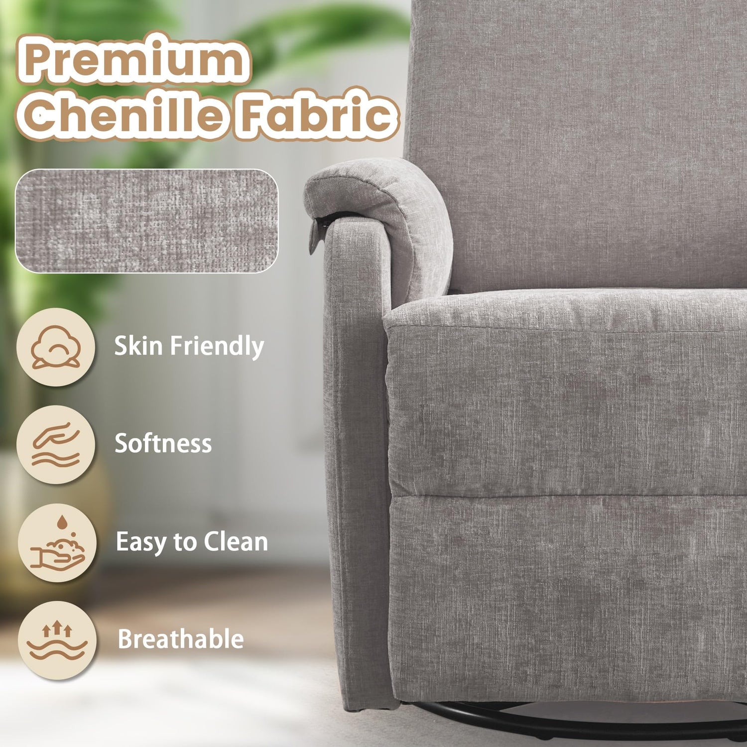 Korser Recliner Chairs, Swivel Rocking Recliner Chair for Adults, Glider Rocking Chair, Small Nursery Recliner for Living Room, Reclining with Modern-Designed Armrests, Chenille, Grey