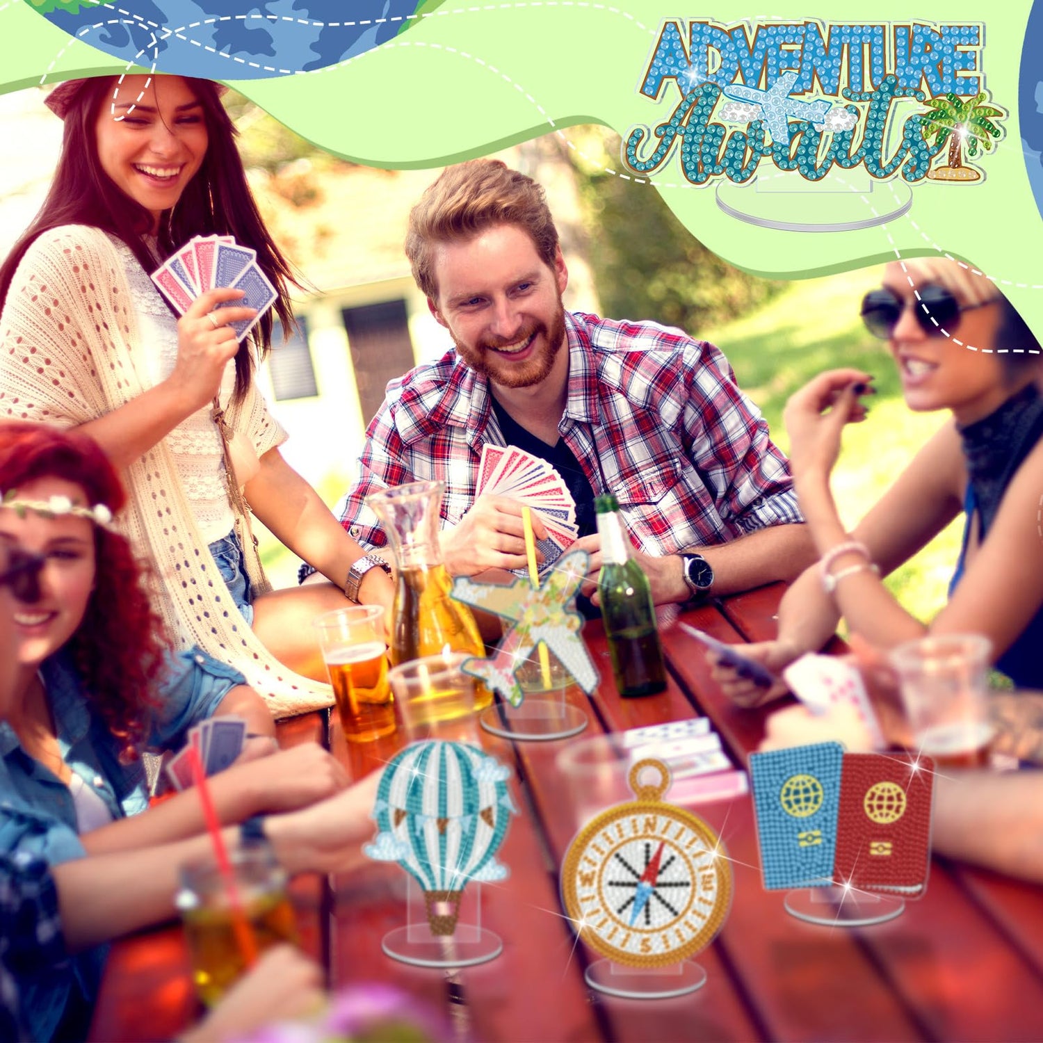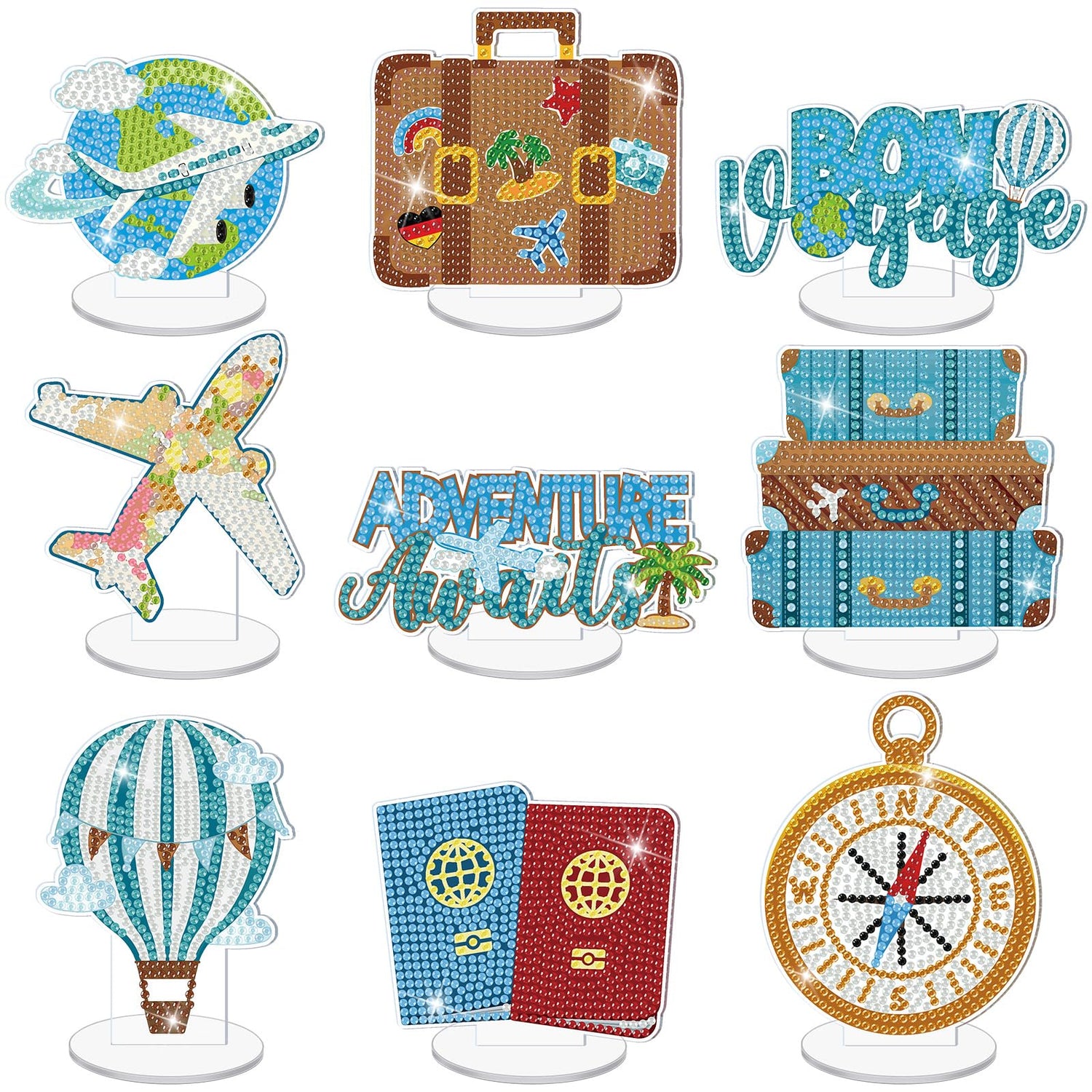 Kosiz 9 Pcs Travel Diamond Art Tabletop Decorations Adventure Awaits Diamond Painting Kits for Adults Double Sided Acrylic Travel Bon Voyage Centerpieces for Table Desktop DIY Crafts Home Party Gifts