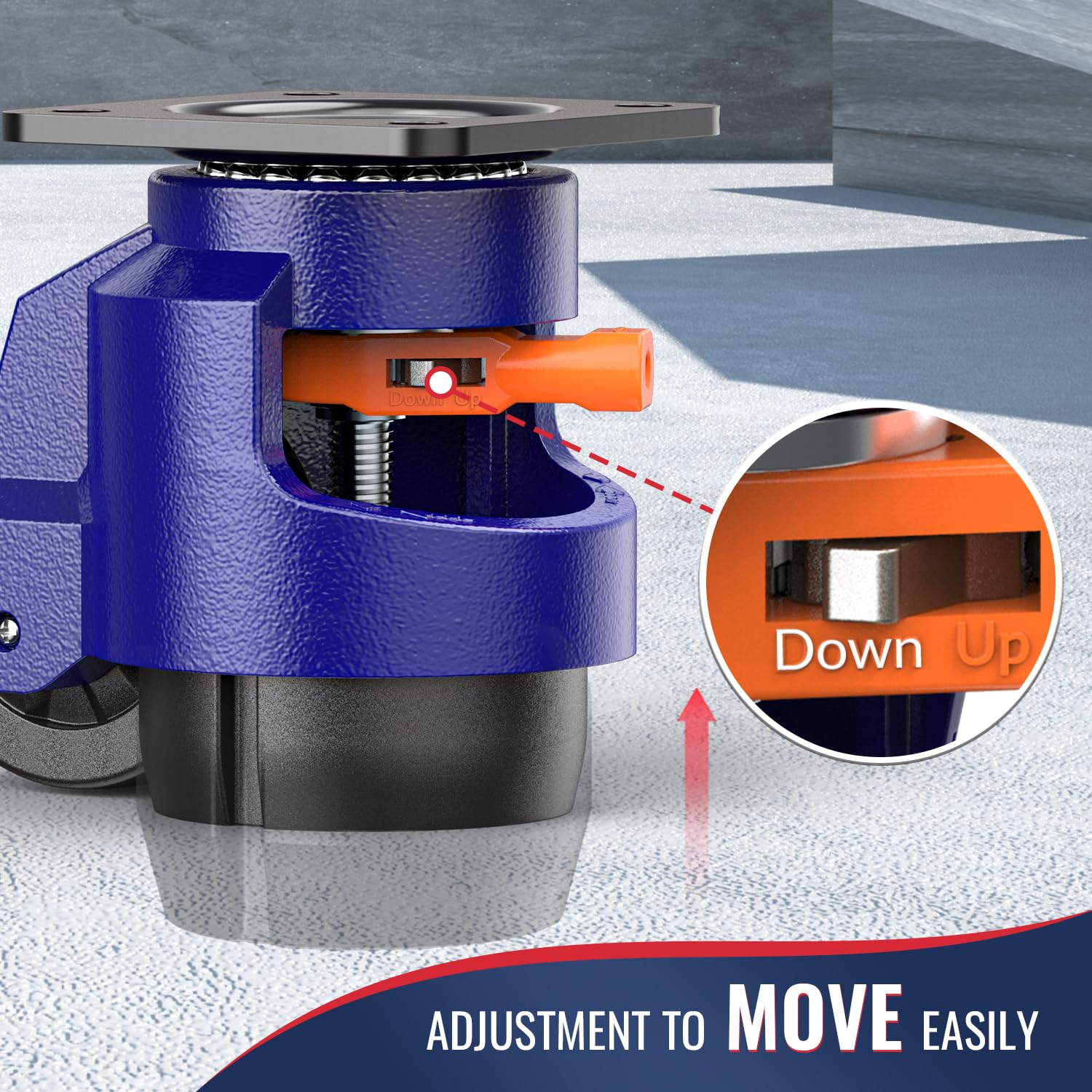 - RATCHET HANDLE DESIGN: Compared to the thumb wheel design, the handle design makes the leveling casters easier to adjust the height and balance heavy equipment.