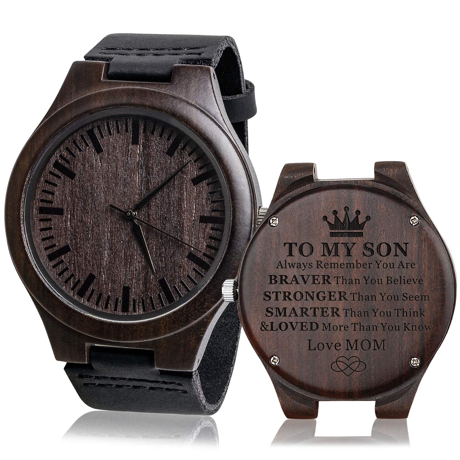 - ENGRAVED - each of our watches are laser engraved with 'To My Son, Always Remember you are braver than you believe,stronger than you seem,smarter than you think, & loved more than you know. Love MOM' they are an extra special keepsake to treasure forever