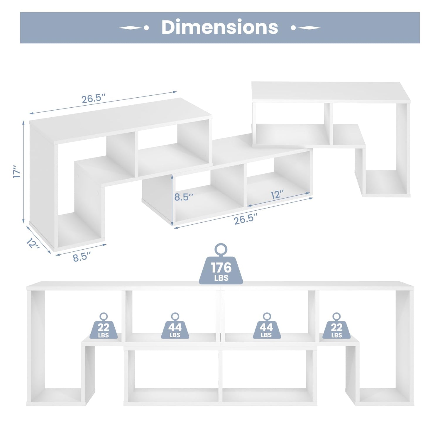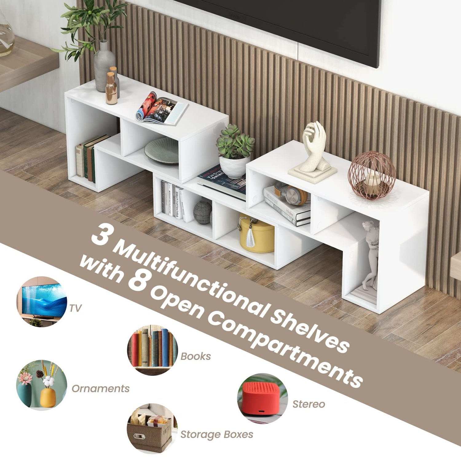 - 【Free Combination TV Stand】Compared to traditional TV console table, this 3-piece cube TV stand features free combination to arrange different layouts and meet your needs. Including 2 L-shaped shelves and 1 rectangular shelf, the TV stand can be rotated and extended from 53'' to 67'' wide to accommodate TVs up to 65 inches.