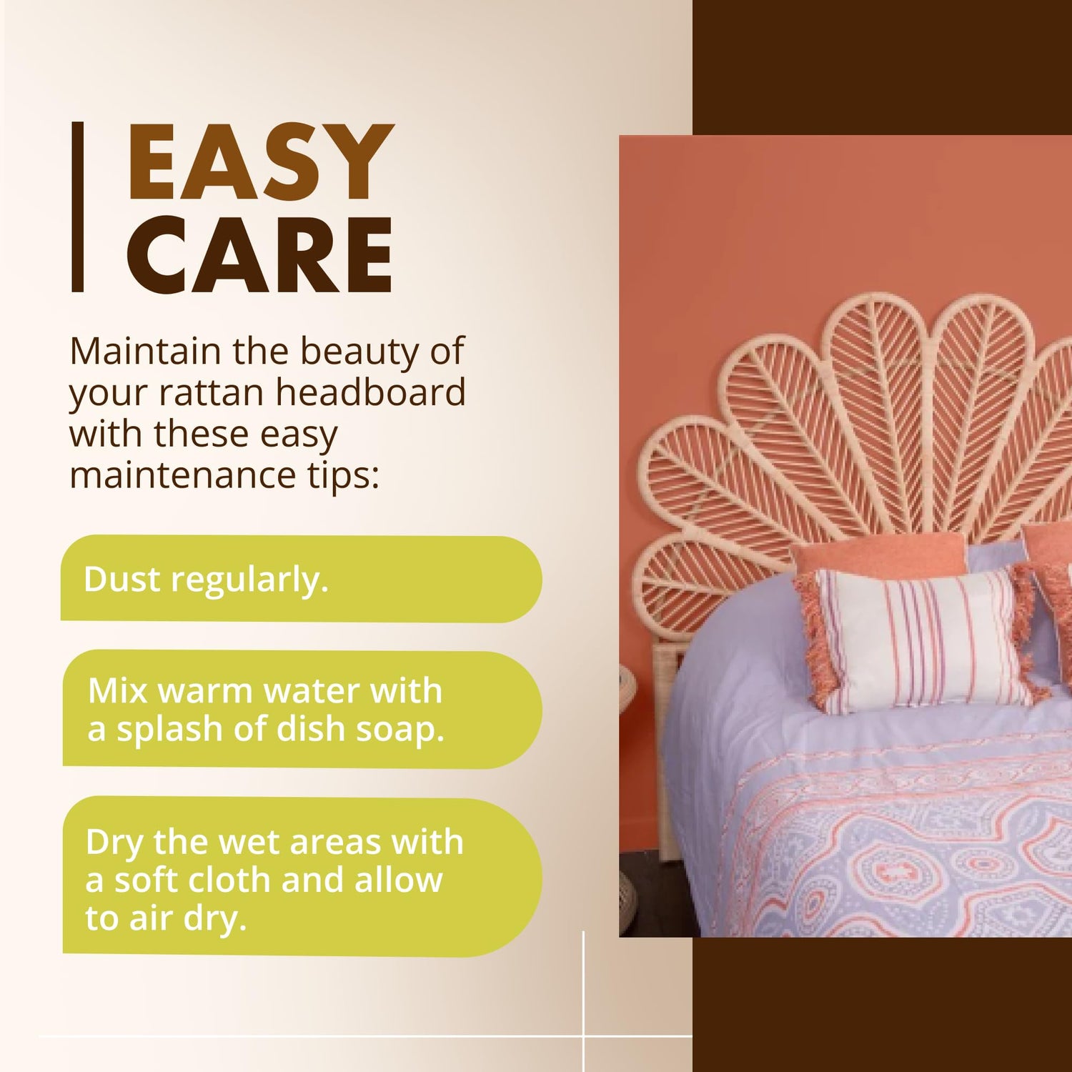 - CREATE A RELAXING RETREAT: Transform your bedroom into a tranquil oasis with our tropical rattan headboard; The natural rattan construction brings a touch of exotic beauty to your space, while the intricate sunflower design adds bohemian vibes; Perfect for anyone seeking a soothing and inviting atmosphere, our headboard will help you create the perfect space for relaxation and rejuvenation