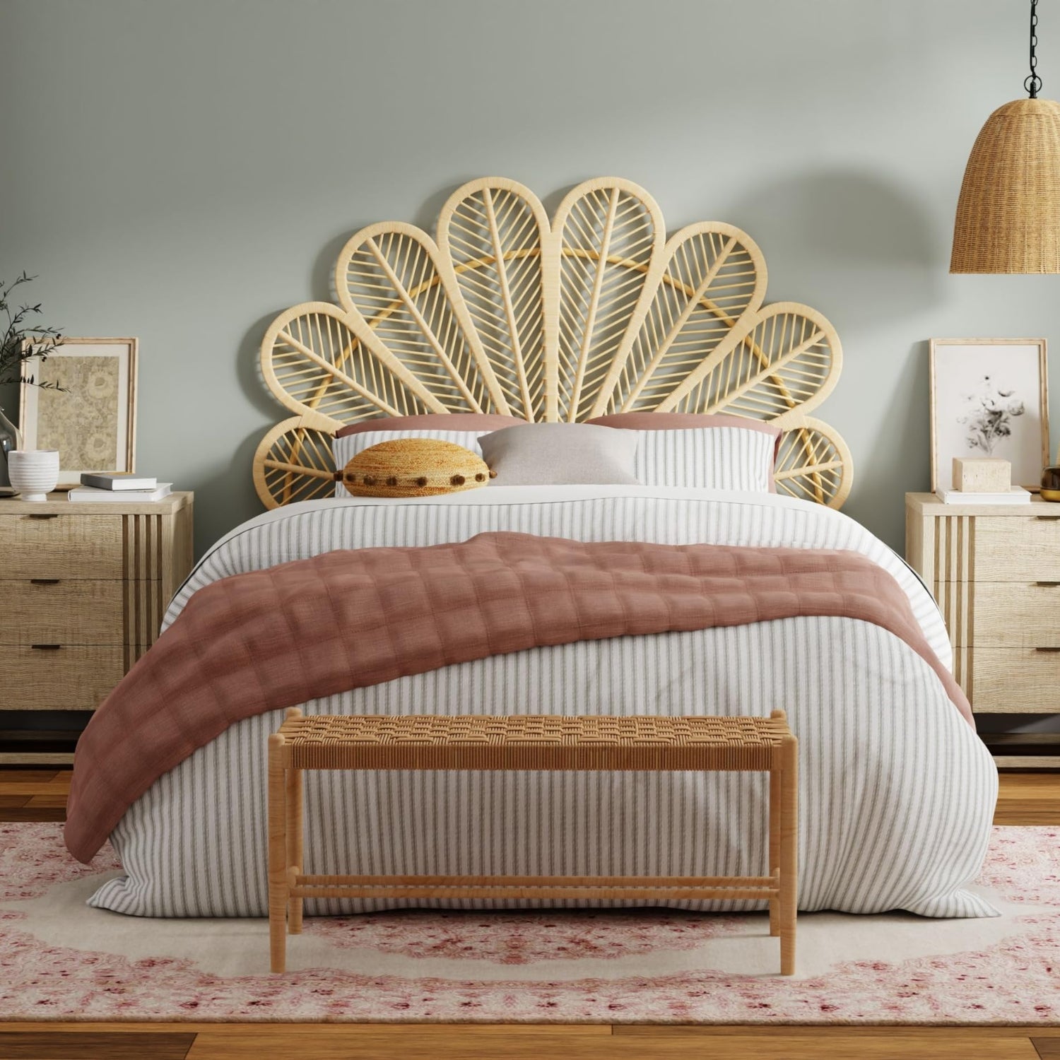 KOUBOO Petal Rattan Twin Headboard, Bedroom, Bedroom Furniture, Headboard, Twin Size, Tropical Decor, Bohemian Decor, Natural