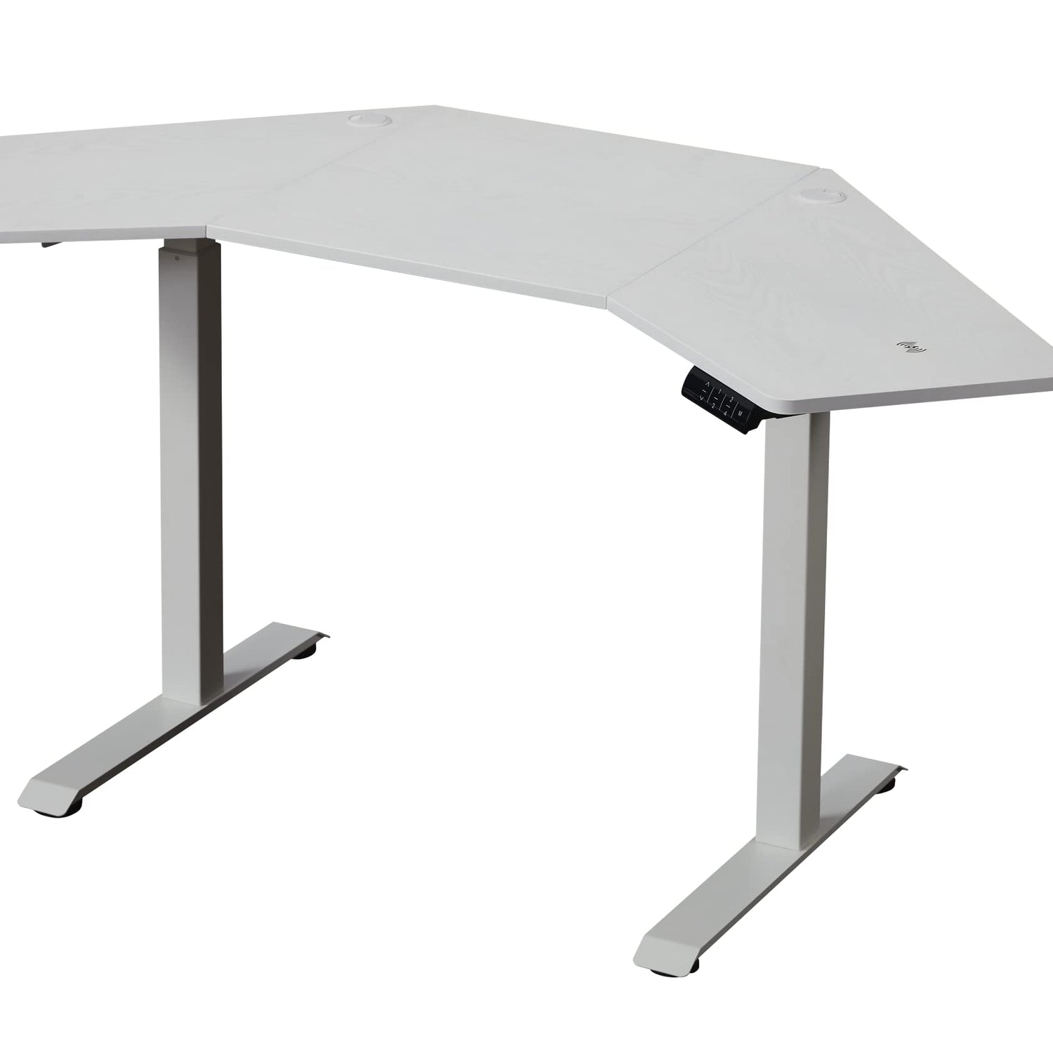 kowo L Shaped Height Adjustable Electric Standing Desk with USB C Hub & Wireless Charger, Sit Stand Corner Desk, Memory Settings, Stand Up Computer Desk Adjustable Table, White