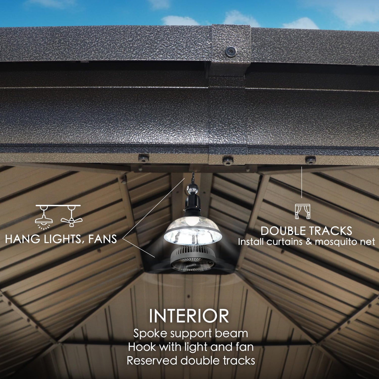 Kozyard 10'x12' Hardtop Gazebo - Permanent Metal Pavilion with Netting Shaded Curtains for Patio, Backyard, and Deck - Galvanized Steel Outdoor Aluminum Canopy, Double Roof Gazebo (Dark Brown)