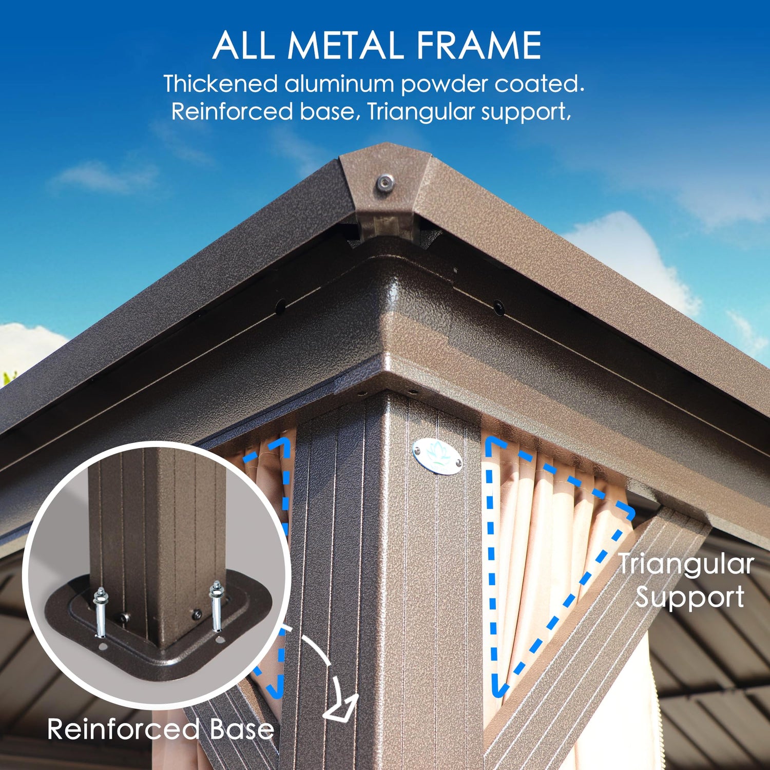 - ✅Hardtop Gazebo - This 10'x12' Hardtop Gazebo is constructed with a sturdy galvanized steel and aluminum frame, ensuring durability and longevity. Sturdy permanent gazebo built with 4"x4" triangular powder-coated aluminum frame, which is more stable and durable than standard others.