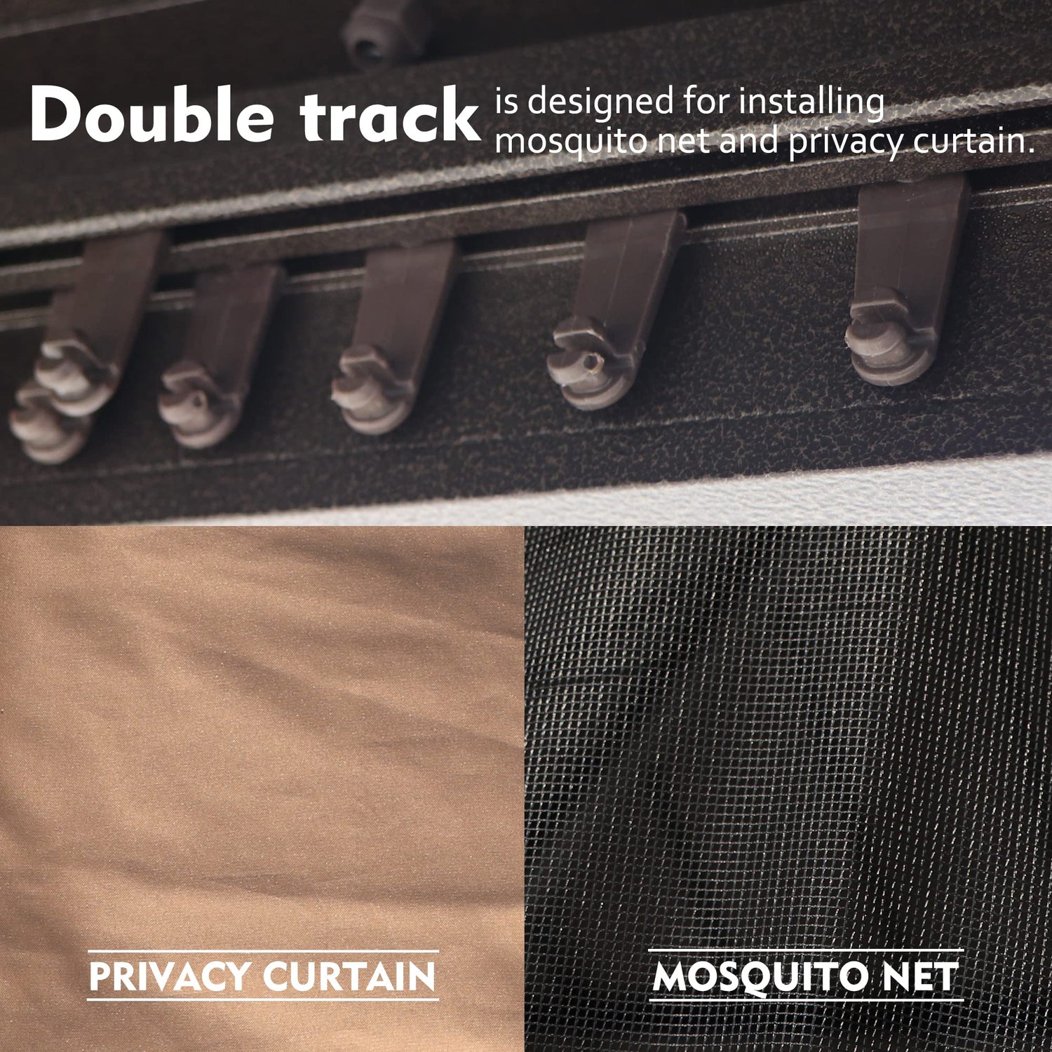 - Netting and Shaded Curtains - The gazebo comes with netting and shaded curtains, providing you with an enclosed space free from bugs and harsh sunlight. The curtains is made from 180G M2 polyester fabric and PU, ensuring flame resistance with CPAI-84 certification. The design allows for separate adjustments via a dual-track system, providing a private, sheltered area with ample airflow and visibility.
