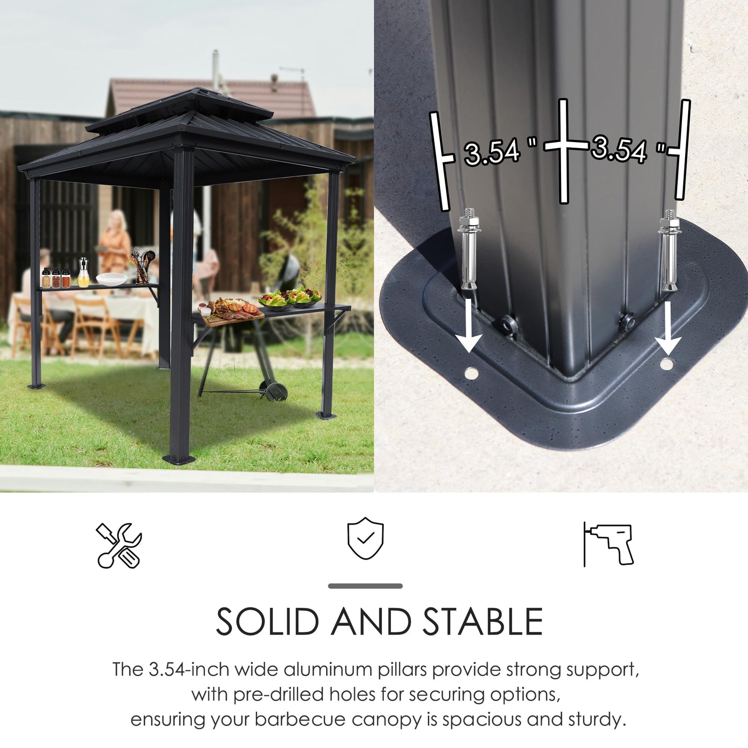 - Spacious Design - With dimensions of 6x8 feet, this grill gazebo metal roof offers ample space for your BBQ setup, ensuring a comfortable and enjoyable cooking experience.