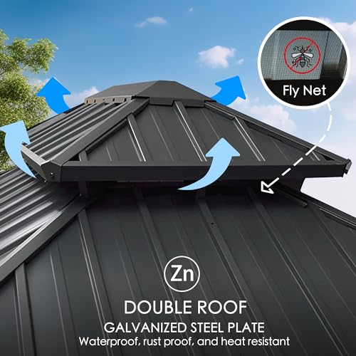 - ✅Double Roof Design- The innovative double-top design of the Alexander gazebo not only enhances its aesthetic appeal but also promotes optimal breathability and exceptional air circulation, creating a pleasant environment, helping withstand strong wind.