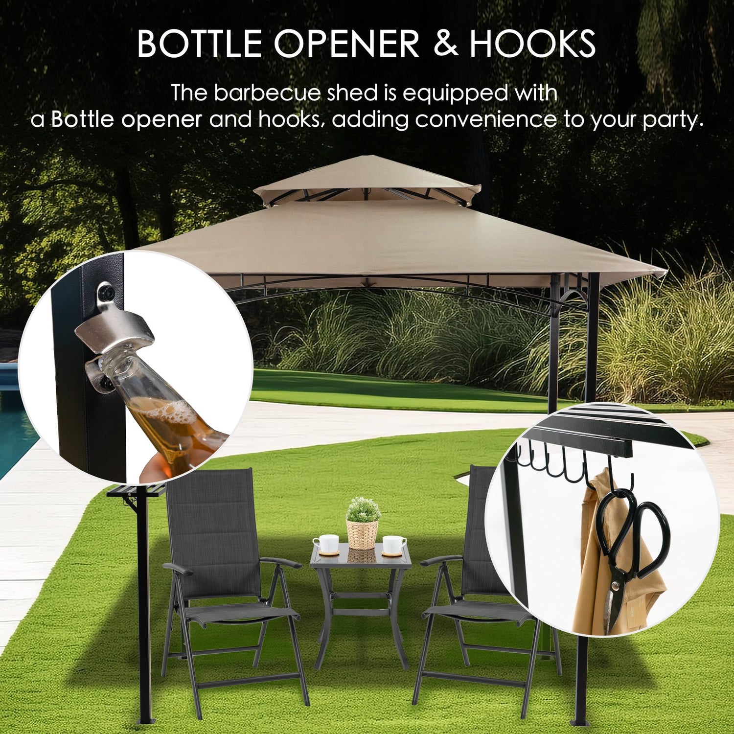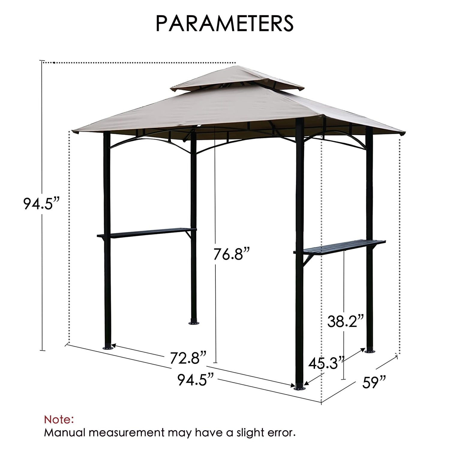 - 🍃Outdoor Gazebo size: L 96.1 x W 59.8 x H 96.5 inches or 8’x5’x8’, . Package includes 1 Steel Frame + 1 Grill Gazebo canopy.