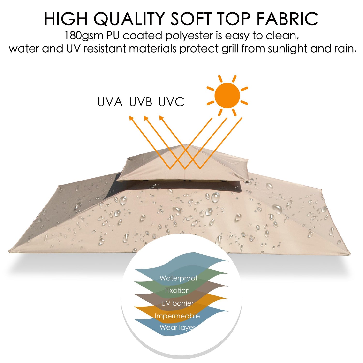 - 🌟Canopy: The soft top canopy of this grill gazebo provides ample shade, keeping you cool while you grill. The 180gsm PU coated polyester canopy is easy to clean and provides protection against rain and UV rays. It offers a shaded area for your grilling.