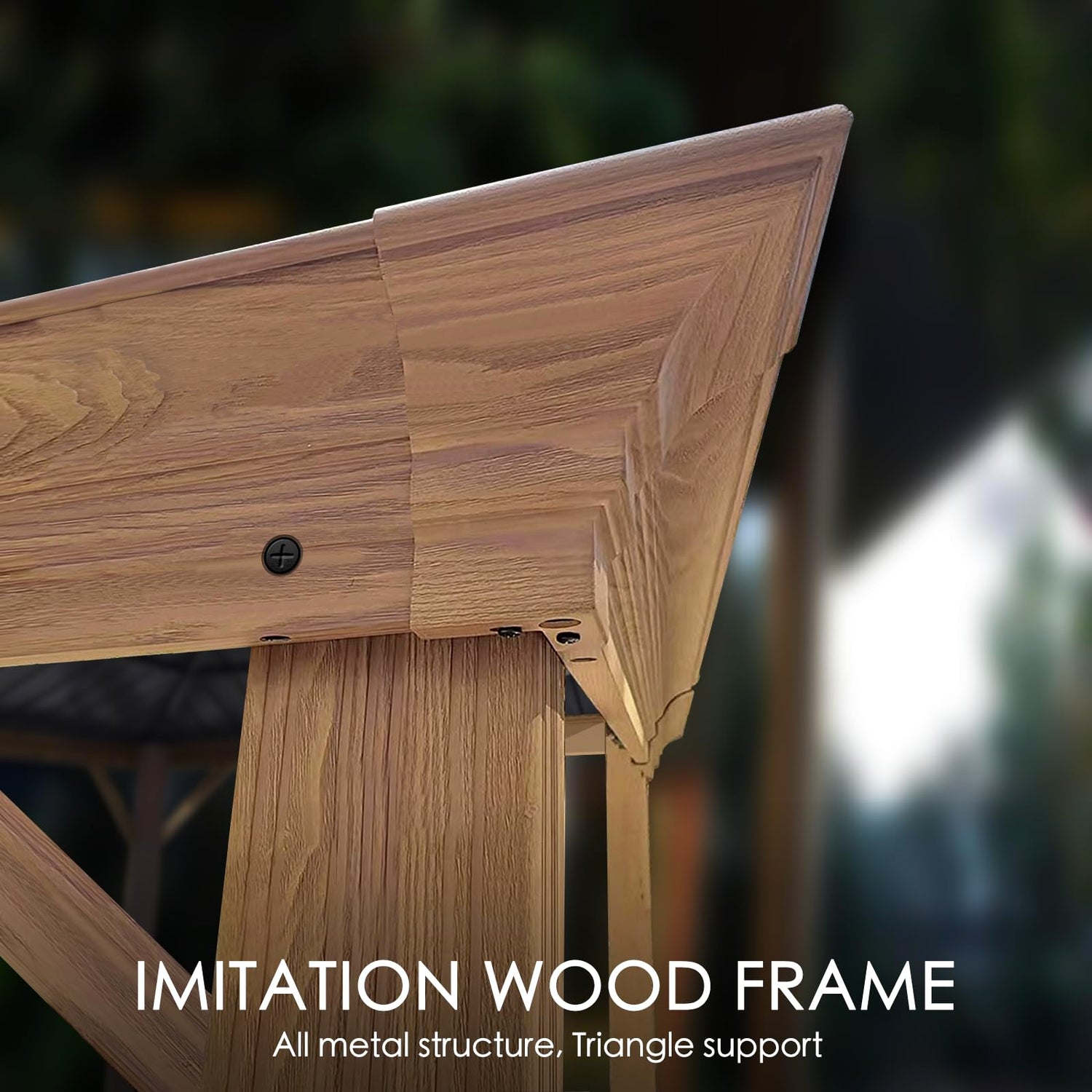 - ✅Wood Looking Aluminum - The gazebo is constructed with wood looking aluminum, giving it a beautiful aesthetic that will enhance the look of any outdoor space.