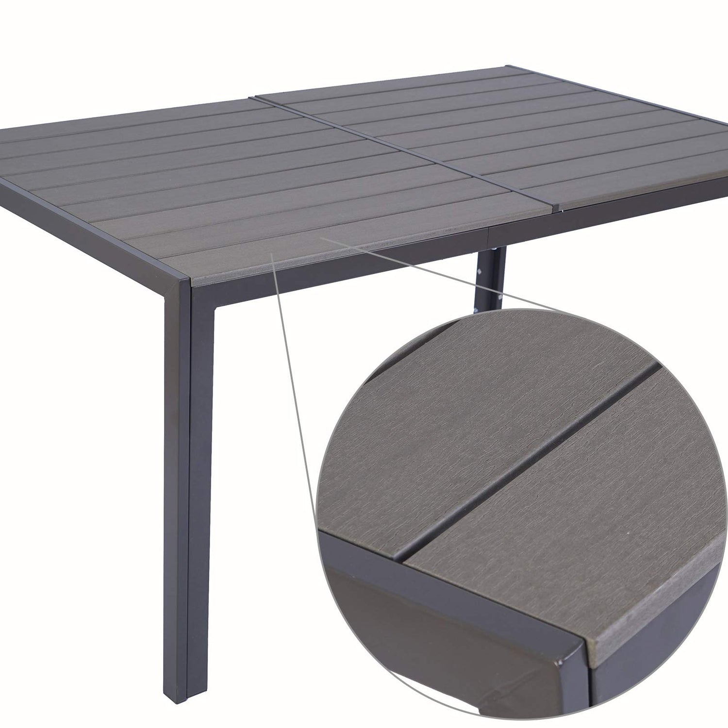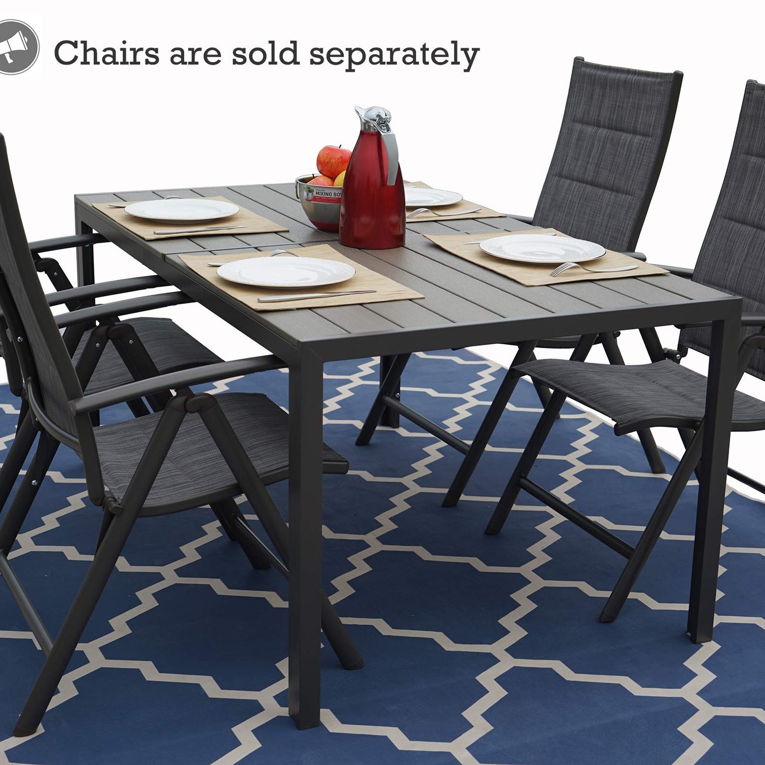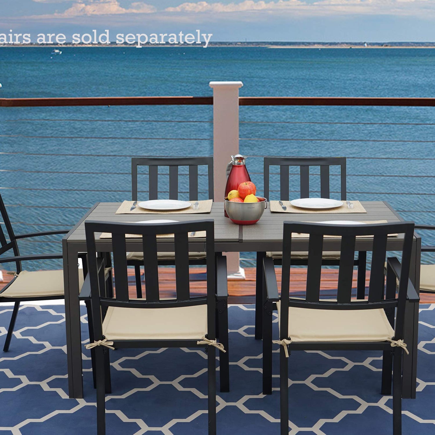 - ✅ STYLISH DESIGN: This table's design is a perfect fit for your patio, porch, backyard, balcony, etc. The wood-look tabletop matches your outdoor decor perfectly and comfortably seats 6 people.