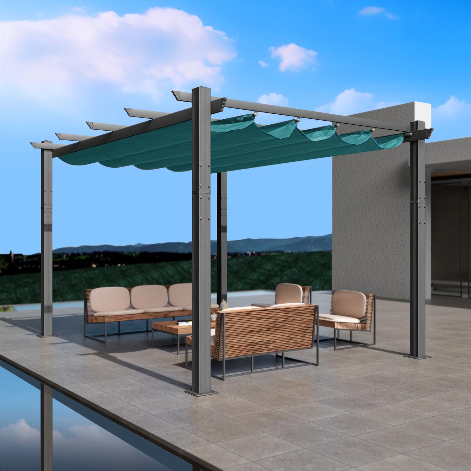 - ✅Sunshade Canopy - The sunshade canopy of this pergola is retractable, allowing you to adjust the amount of sunlight that filters through, providing a comfortable outdoor environment.