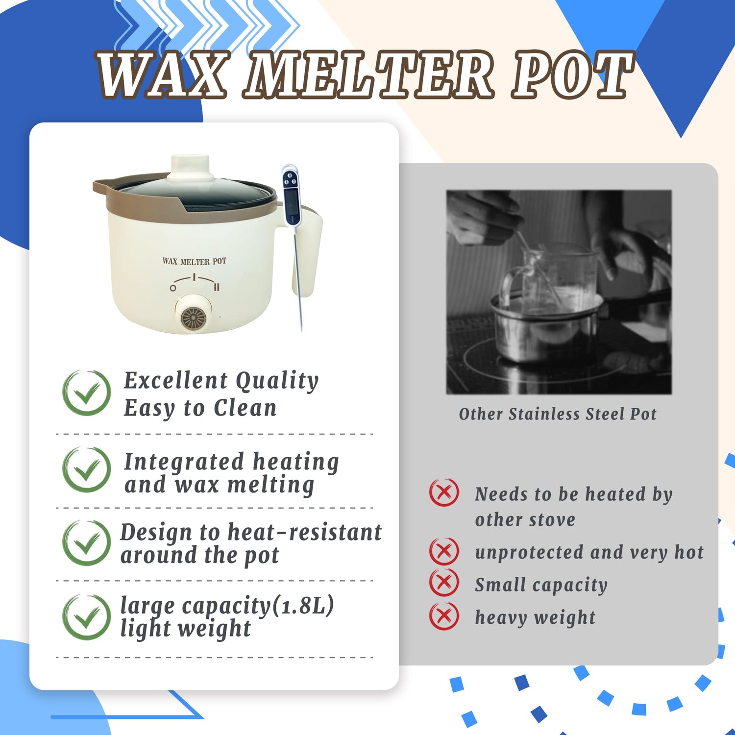 - Ideal Wax Melting Pot: Whether you're new to candle making or looking to enhance your crafting arsenal with additional tools, our electric candle melting pot is your new choice to improve your candle making skills. The perfect capacity can help you control it with one hand, easily pour out wax with the nozzle, and provide real-time temperature control.