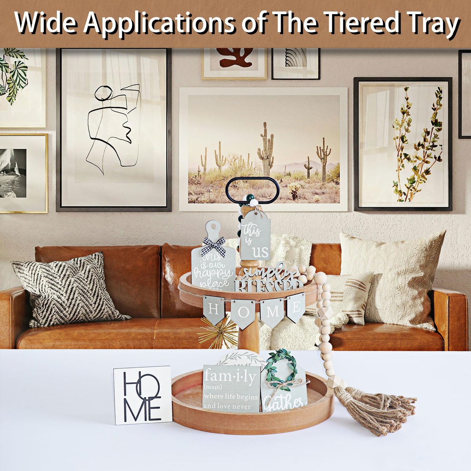 - π TWO TIERED TRAY DECOR:Display all your favorite decor with this farmhouse 2 tier stand. This wooden tiered tray complements any tier tray decor items you may have. Use this decorative tiered tray in your kitchen, living room or entry hall to bring your home to life!
