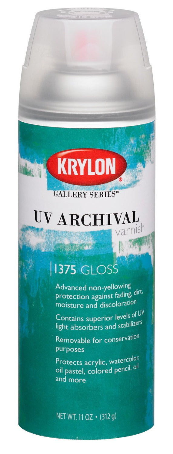 Krylon K01375000 Gallery Series UV Archival Varnish Aerosol Spray, Gloss, 11 Ounce