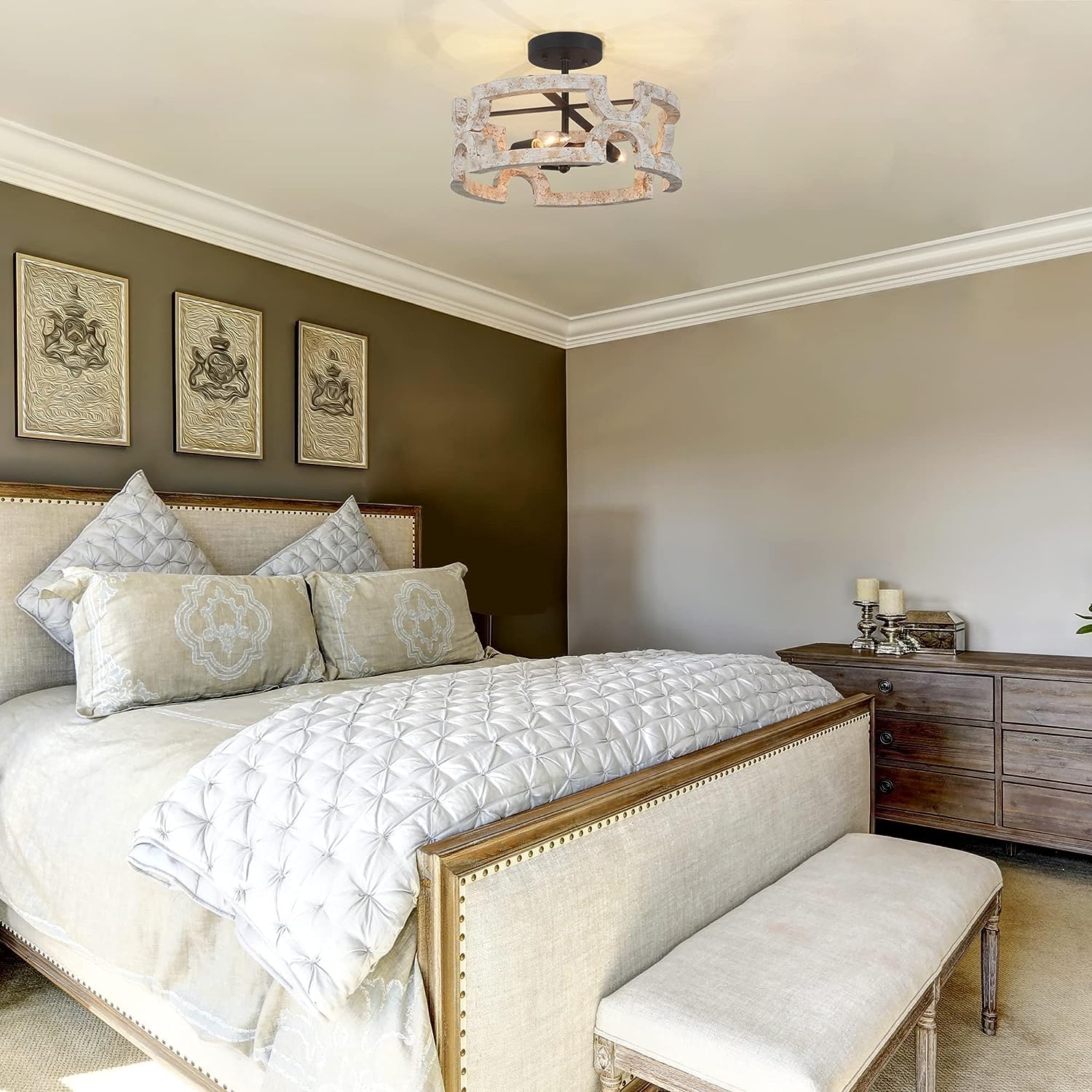 - ❤Unique Aesthetic Design: Inspired by the Rome Colosseum, the elegant arc-shaped line joined by the natural solid birch presents a luxurious and beautiful appearance. The hand-painted rustic whitewashed finish with black mottled enhances an elegant shine that complements your room with romantic country cottage aesthetics.
