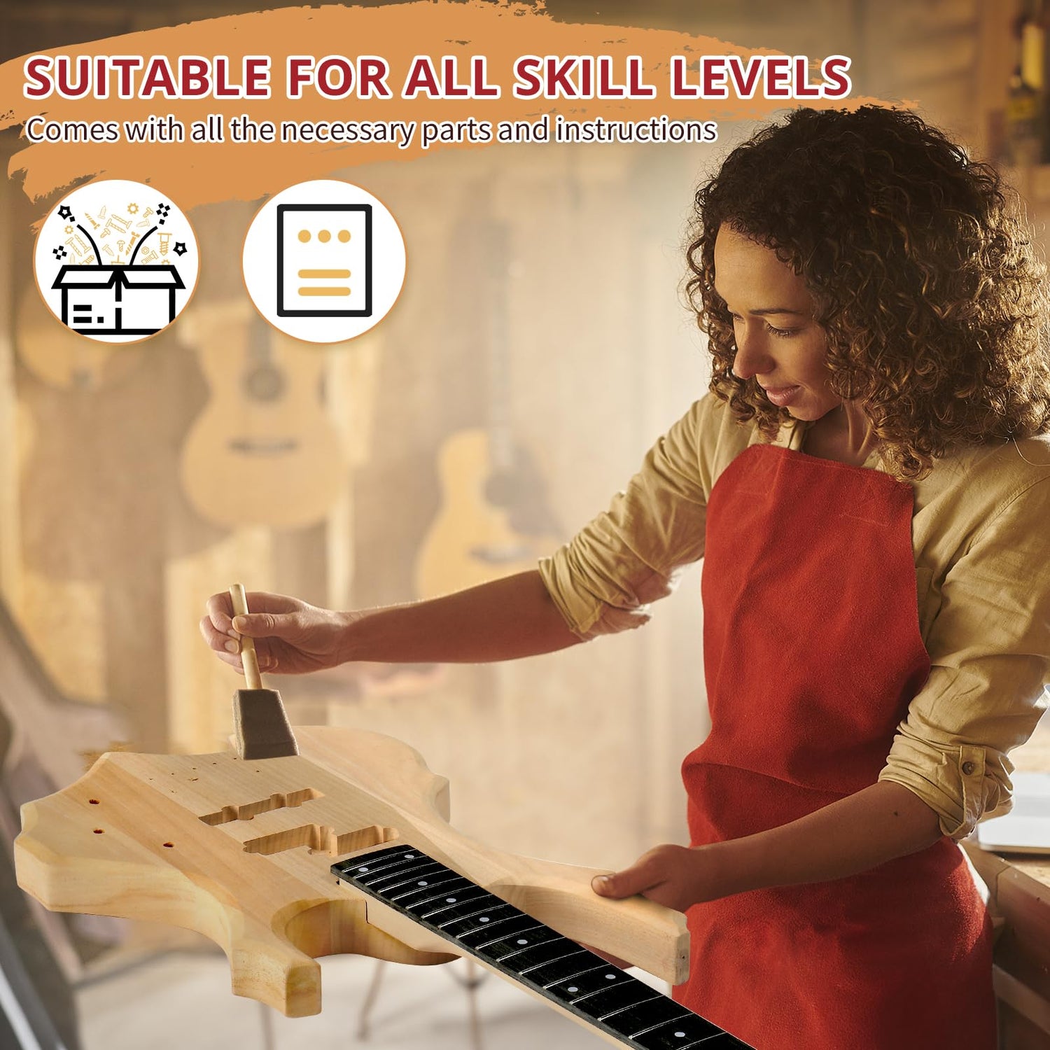 - EASY TO INSTALL: Our DIY guitar comes pre-sanded and drilled and no welding is required, which greatly reduces the difficulty of building your guitar. Not only come with instructions but also an assembly video with all the detailed steps to make your installation easier