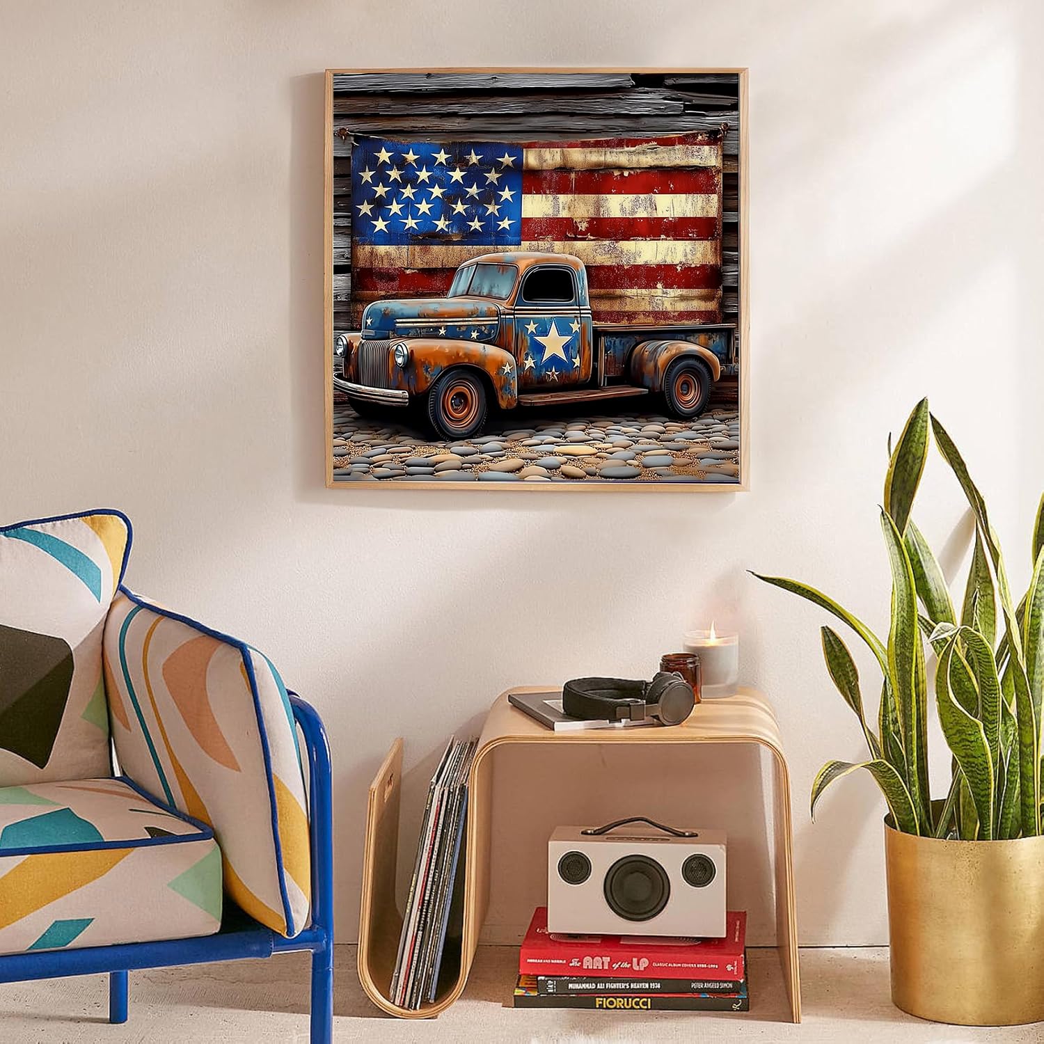 KTHOFCY 5D DIY Diamond Painting Kits for Adults, America Flag Truck Full Drill Embroidery Cross Stitch Crystal Rhinestone Paintings Pictures Arts Wall Decor Painting Dots Kits 11.8X11.8 inch