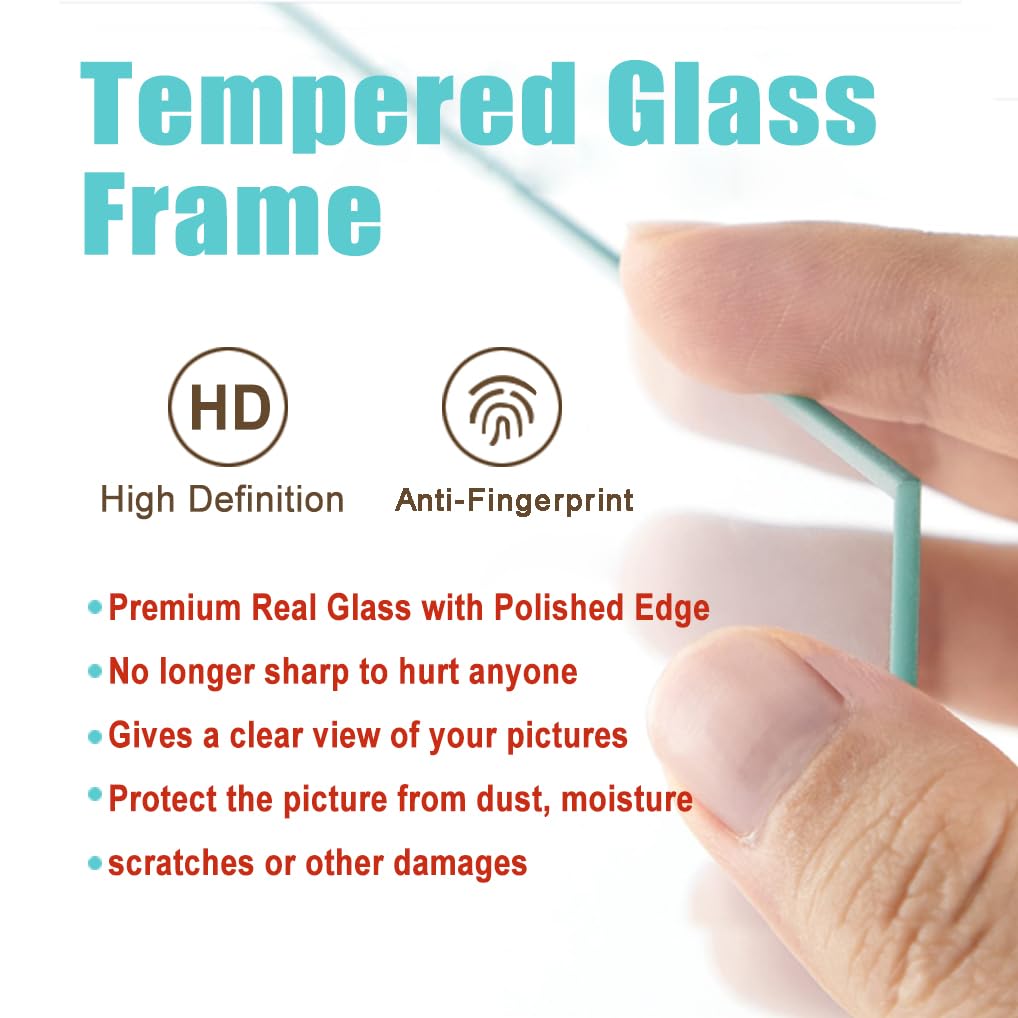 - Strong HD tempered glass: Traditional photo frames use glass, but it is easy to break, and glass fragments are easy to cut the skin. So we chose high-quality tempered glass for our picture frames. The biggest advantage of tempered glass is that it is safe and not easy to break