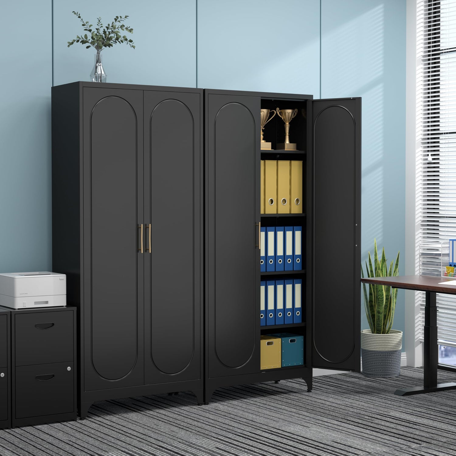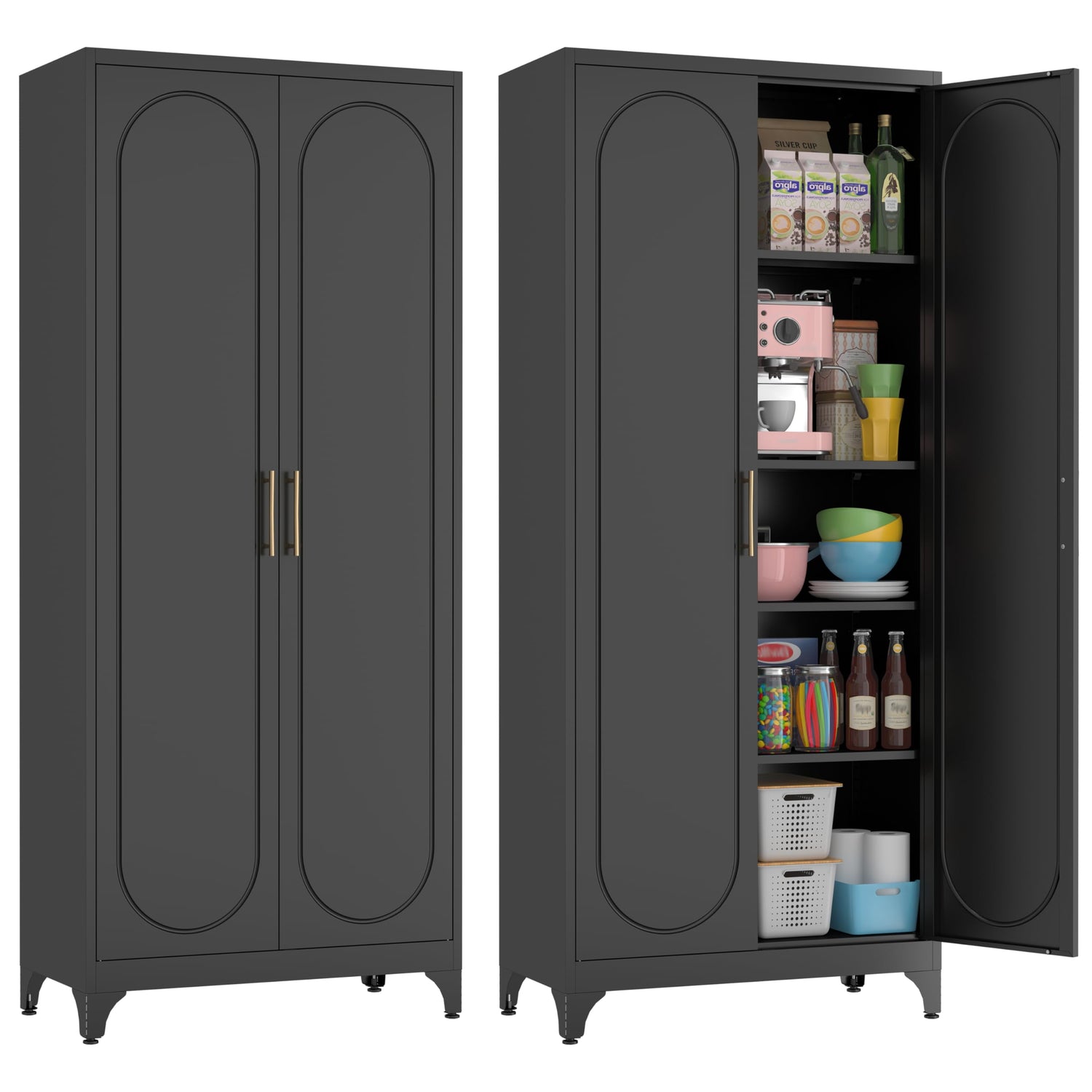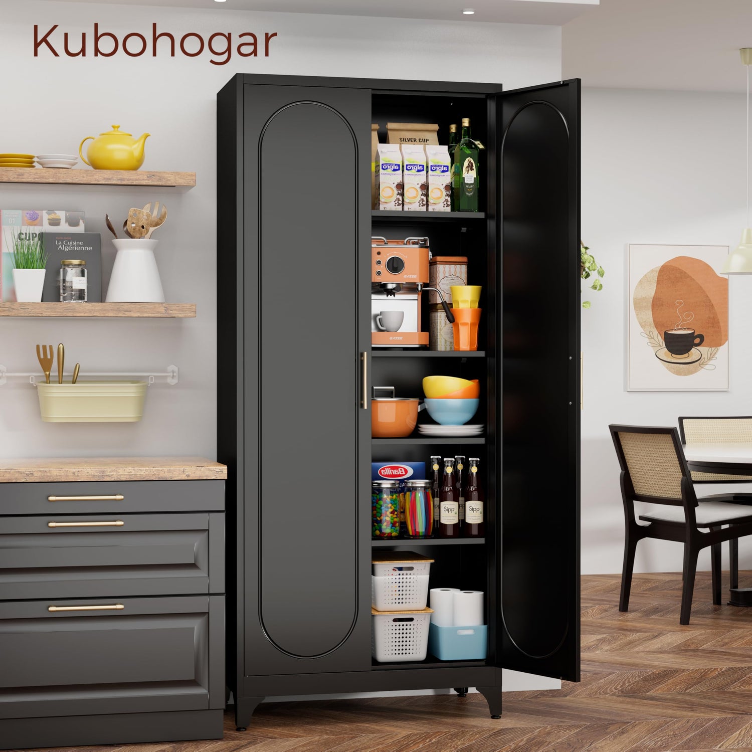 Kubohogar 75" Tall Kitchen Pantry Cabinet with 2 Doors and 4 Adjustable Shelves, Black Metal Storage Cabinets, Kitchen Cupboard for Dinning Living Room, Bathroom, Home Office