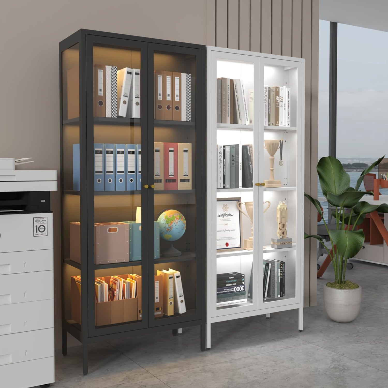 - STRONG & SAFE: Glass cabinets are made of cold-rolled steel, which is more stable than ordinary wooden cabinets. The storage cabinet door has a magnetic design to ensure that the door closes seamlessly, and can also be mounted on the wall to provide a safe and secure display environment for your valuables
