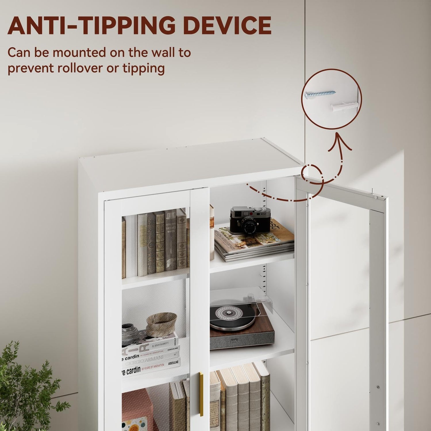 - High Quality Material: Metal display cabinet with glass doors made of high quality metal, strong and stable, bearing capacity. Metal cabinets last longer than ordinary wooden cabinets. Glass cabinets can also be mounted on the wall to prevent tipping. Glass cabinet size: 71"H x 32"W x 16"D