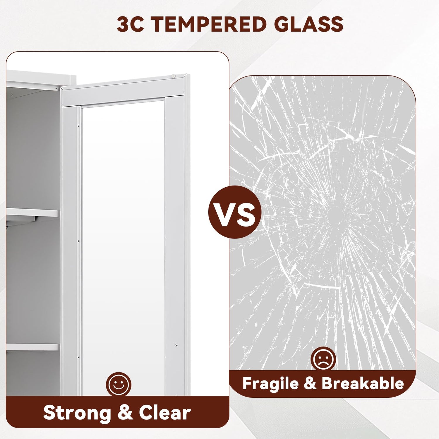 - 3C Tempered Glass: The glass display cabinet door adopts 3C tempered glass, which is durable and has strong pressure resistance. Curio cabinets allow your collections, books, and dolls to be clearly displayed. The gold handle adds a touch of sophistication to the glass cabinet