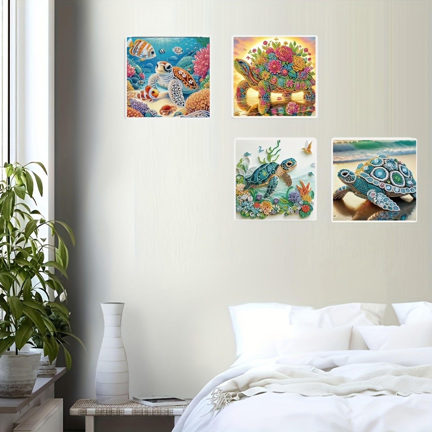 KUFWKEY 4 Pack Sea Turtle Diamond Art Kits for Adults,5d Diamond Painting Kits for Beginner,Crystal Rhinestones DIY Handicrafts,Diamond Mosaic Gem Art,Special Shape Diamond Art,11.81X11.81 inchs