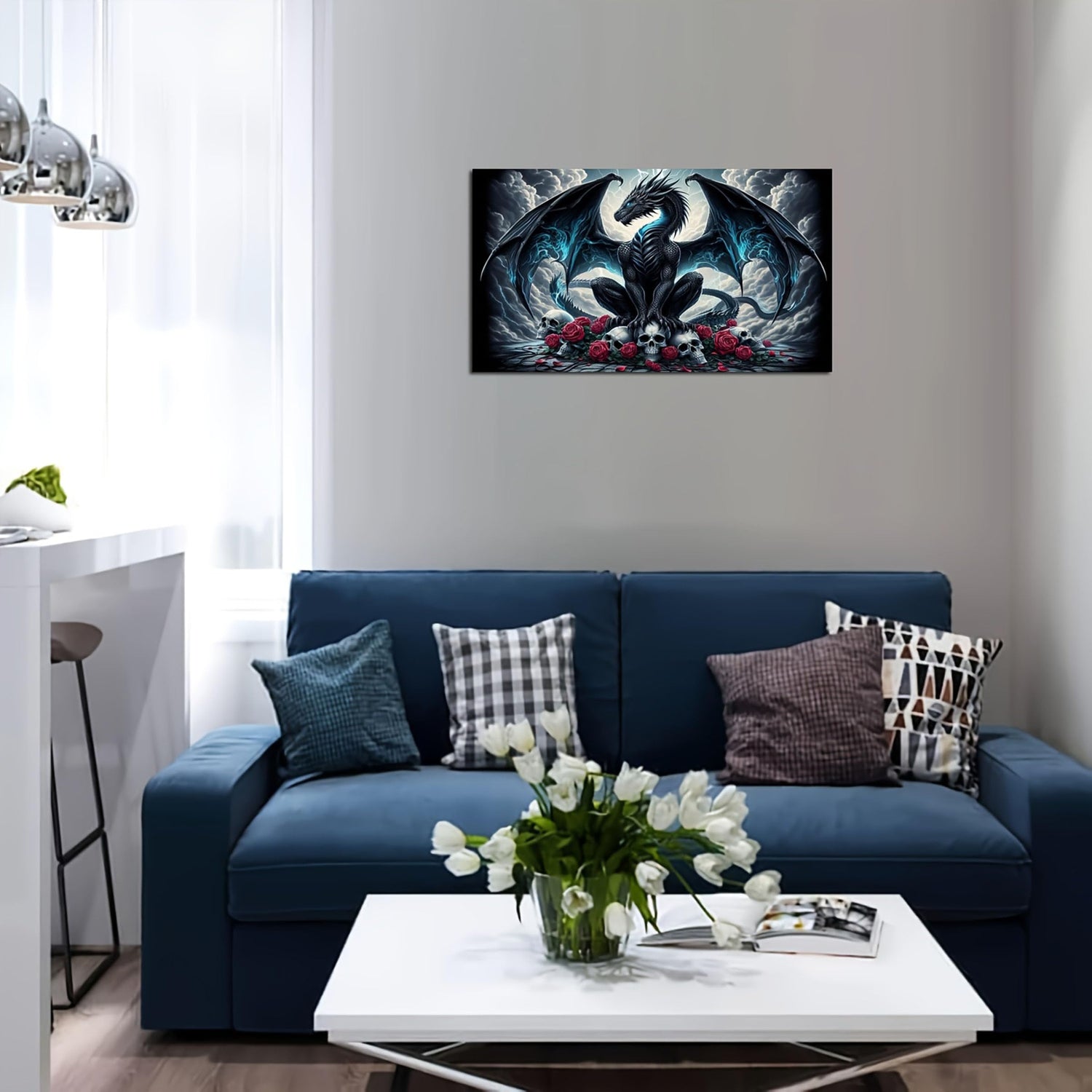 KUFWKEY 5D DIY Dragon Diamond Painting Kits for Adults,Fantasy Animal Art,Skull Gothic Art,Full Round Diamond Art Kits,Diamond Mosaic Emboridery for Home Decor,Big Size 27.5 x 15.7 inches