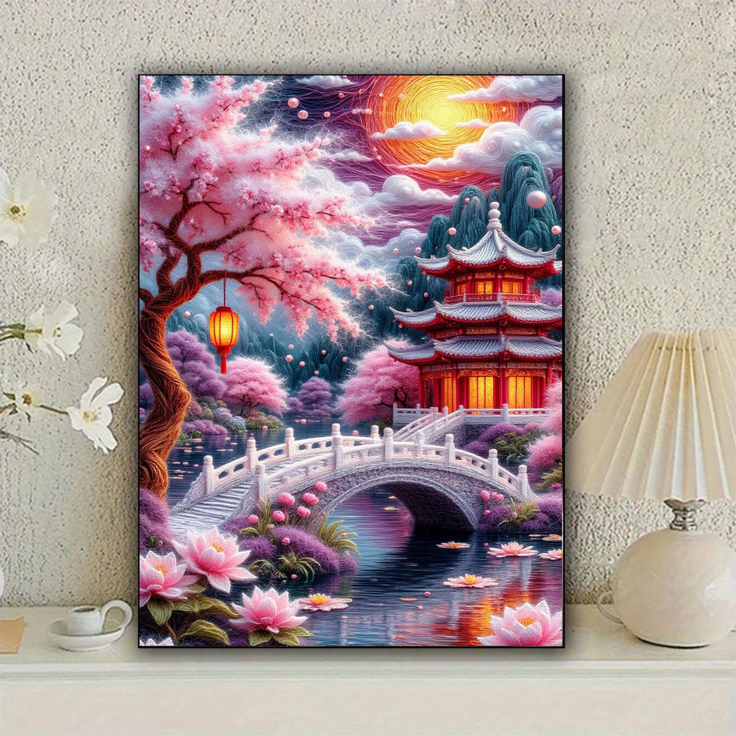 KUFWKEY Landscape DIY Diamond Painting Kit, Japanese Garden Scene Diamond Art Kits for Adults,5D Full Round Drill Diamond Mosaic Kits,DIY Diamond Dots for Beginners,12x16 inch
