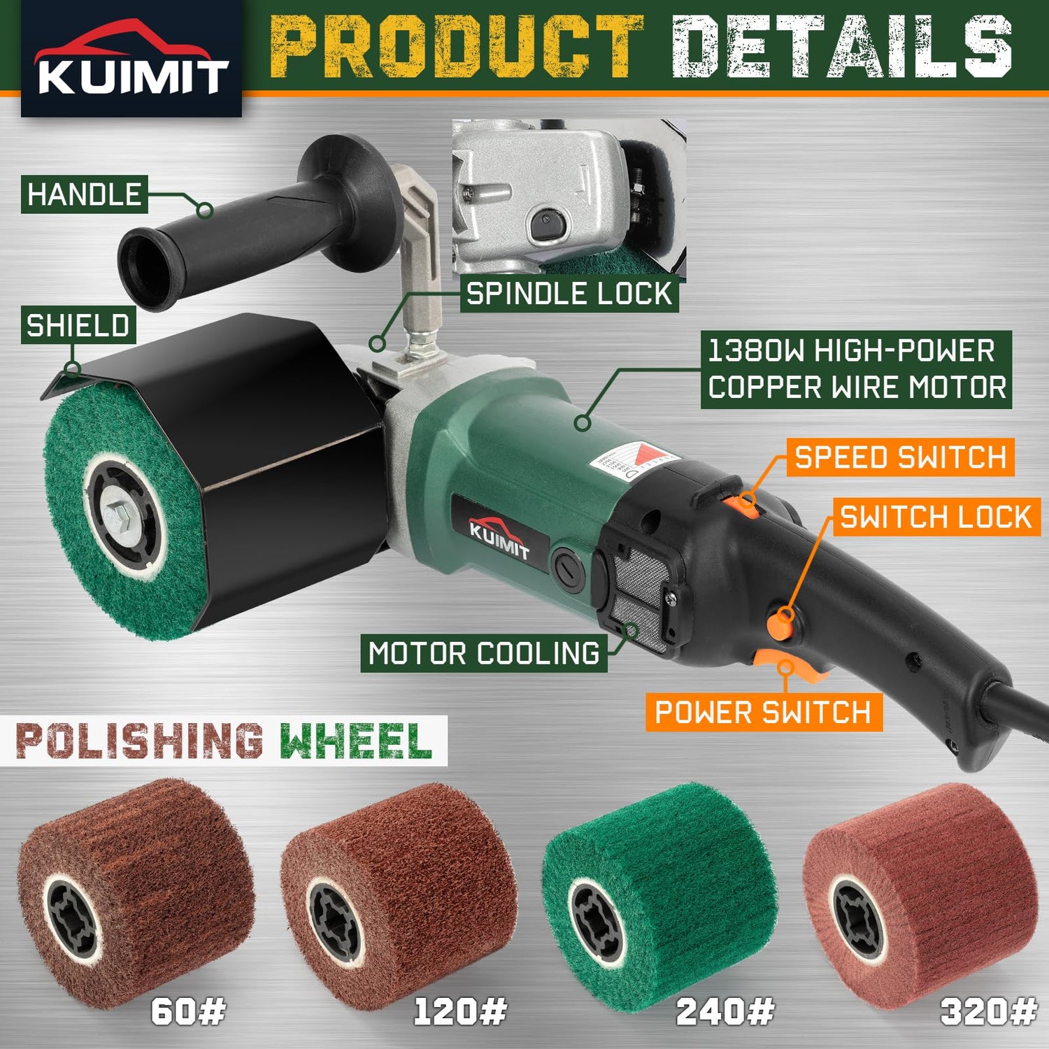 KUIMIT Handheld Metal Burnishing Machine,Electric Sander Polisher for Wood Stainless Steel Polishing,Lock Switch,Auxiliary Handle