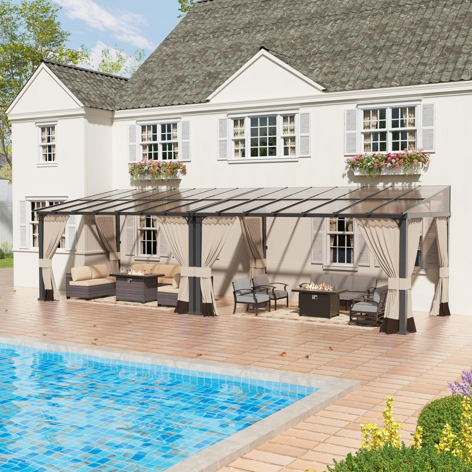 Kullavik 10' × 28' Hardtop Gazebo for Patio,Wall-Mounted Lean to Gazebo Pergola with Sloping Roof and Durable Aluminum Frame,Large Heavy Duty Awnings for Decks,Backyard,Sand