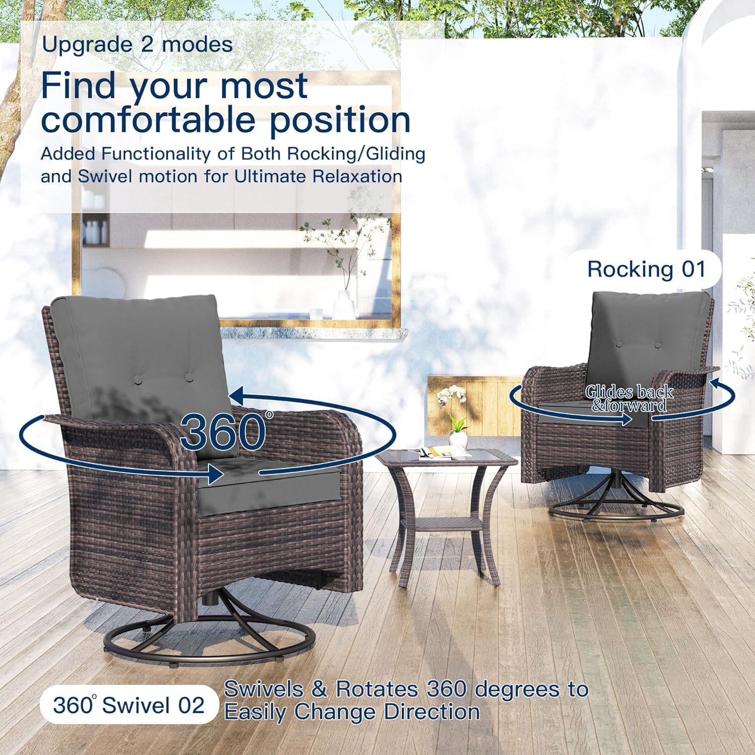 - 360 Degree Swivel Rocking:2 rocking chairs perfectly combine the functions of rocking and swiveling,they can rotate 360 degrees in all directions and rock back and forth,swivel in any direction as needed.Kullavik uses new brown wicker made of high-density polyethylene and a thick stainless steel frame to create stylish,lightweight,and durable patio furniture that can withstand the ever-changing weather.