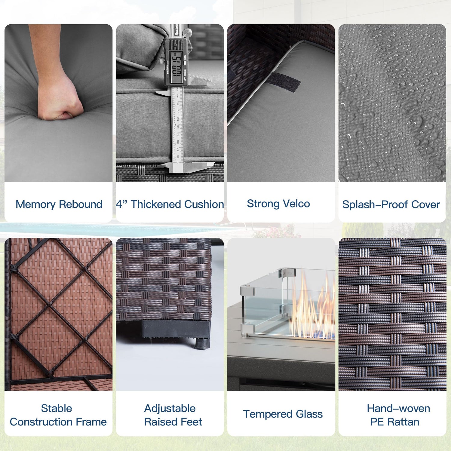 - Ultimate Comfort Experience:Seat cushions and back cushions are filled with thick and soft foam and cotton respectively for better comfort.The back cushion covers with straps holds the cushion tightly in place and prevents it from slipping.The cushion covers made of high-density fabric is not only durable but also splash-proof and removable for daily cleaning and maintenance.