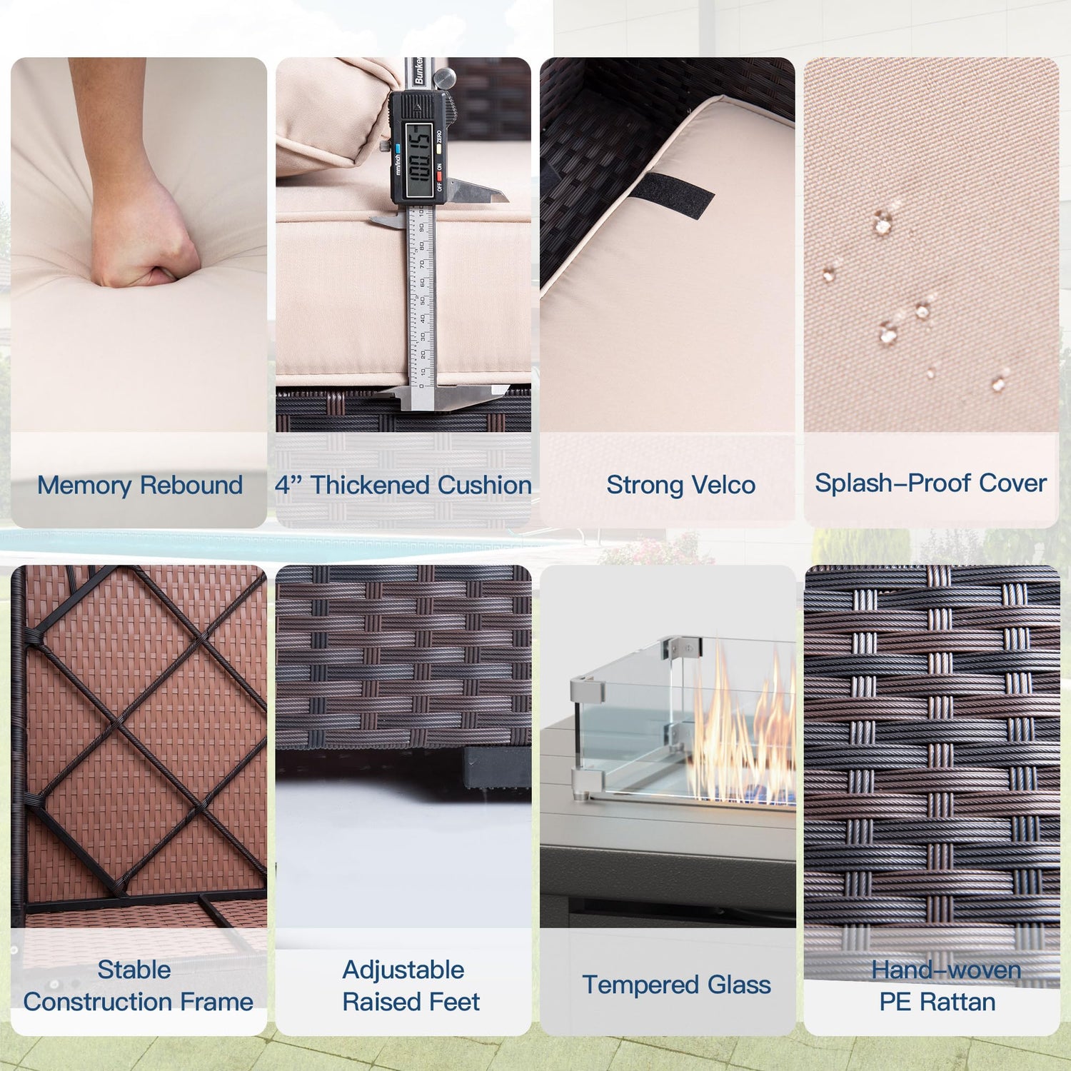 - Ultimate Comfort Experience:Seat cushions and back cushions are filled with thick and soft foam and cotton respectively for better comfort.The back cushion covers with straps holds the cushion tightly in place and prevents it from slipping.The cushion covers made of high-density fabric is not only durable but also splash-proof and removable for daily cleaning and maintenance.