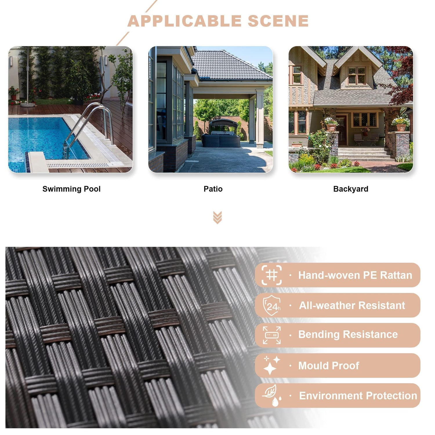 - SOLID FRAMEWORK & PE RATTAN:Kullavik whole structure of the outdoor patio furniture set includes two main parts. One is the solid anti-rust steel frame which is made of -coated heavy-duty metal, enhancing the stability considerably. The second part is the PE rattan which is synthetic manual wicker. This kind of wick is more sturdy and durable than others, making sure the sofa set can be used for a long time
