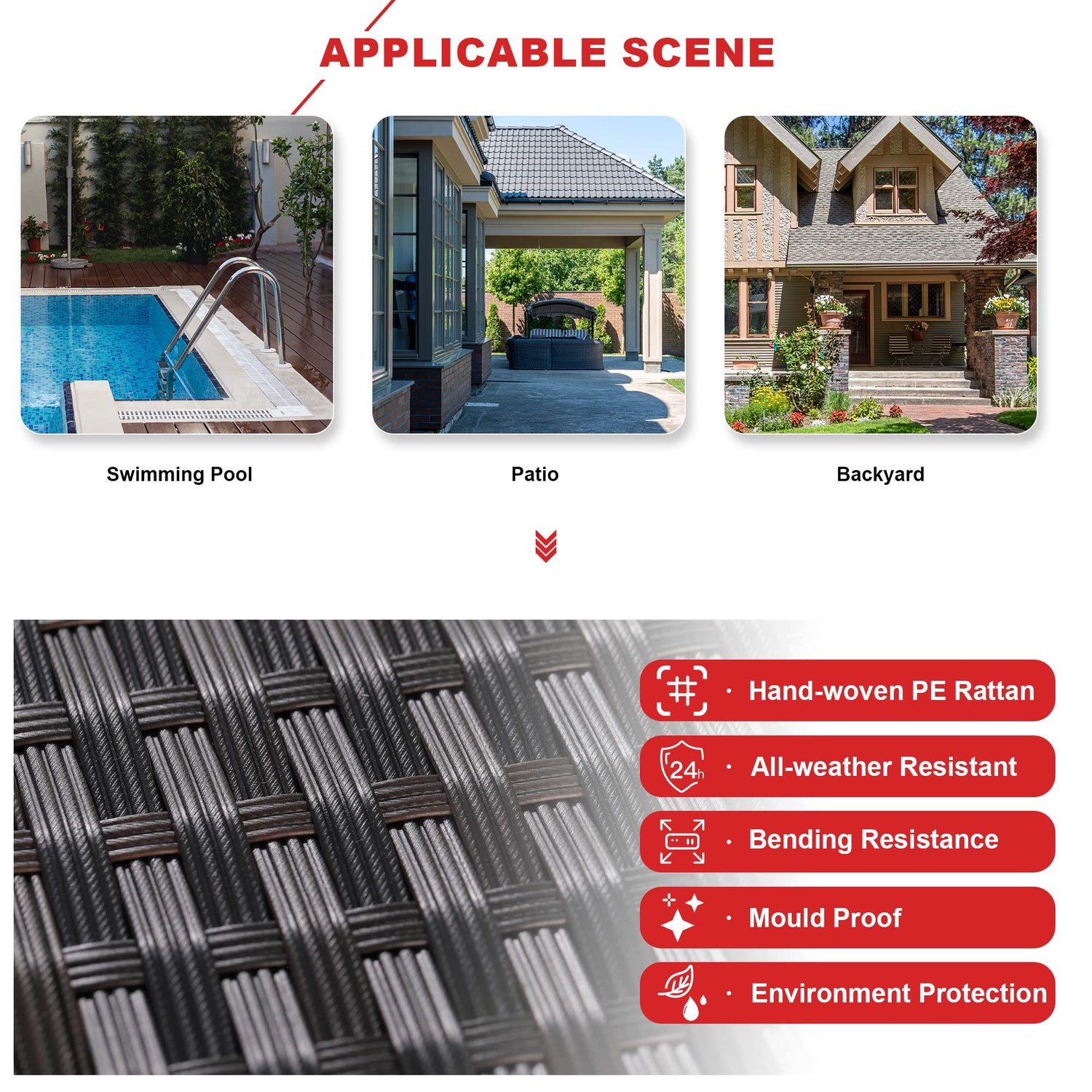 - Ultimate Comfort Experience:The height of the furniture's seat board and backrest is ergonomically designed. The matching seat cushions and backrests are filled with thick cotton and soft cotton respectively, providing a more comfortable experience. The back cushions with straps and the seat cushions with Velcro keep the cushions tightly in place to prevent them from slipping off.