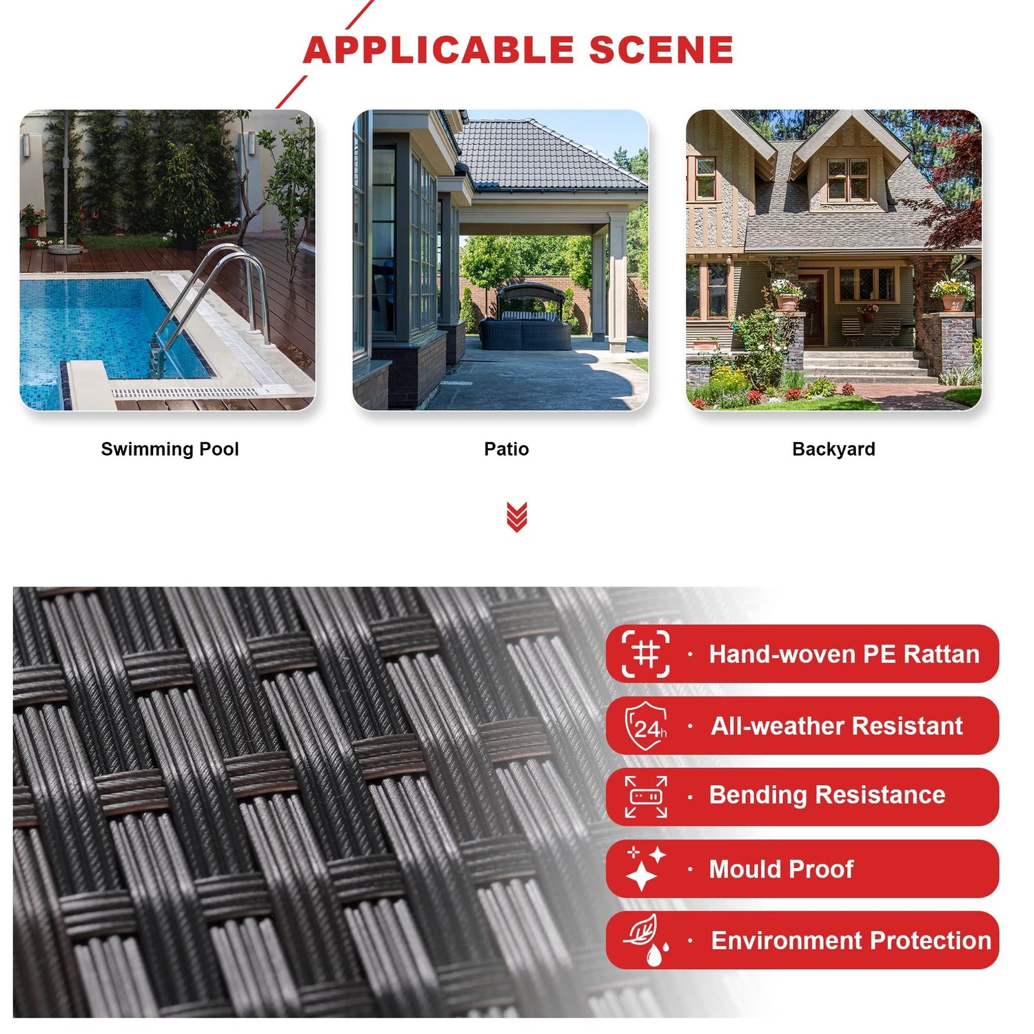- UPGRADED DESIGNS SOFA:The patio conversation sets of 2025 is totally upgraded, especially the widened armrest and the heightened back support. The widened armrest gives you more space to hold your arm, improving your user experience. Also, you also can put books or drinks on the armrest when you enjoy the outdoor life. Meanwhile, the heightened back support is more ergonomic which can enlarge the surface between you and the back support, giving you the most comfortable user experience