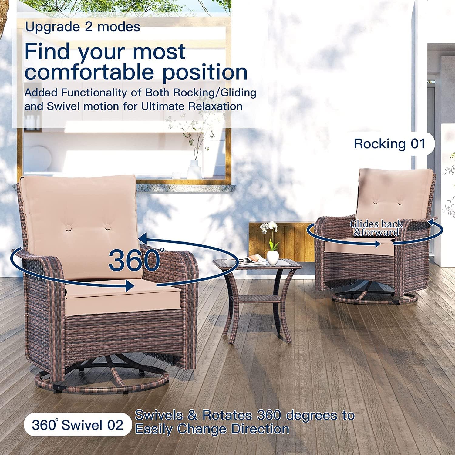 - 360 DEGREE SWIVEL ROCKING - 2 chairs perfectly combine the function of rocking, swiveling, they allow 360 degree all-round rotation and rocking back and forth, rotating in any direction as needed, relaxing and cozy sitting on your front porch or back patio, enjoying the extreme comfort time