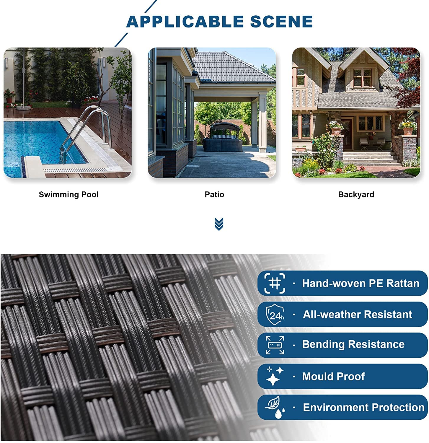 - SOLID FRAMEWORK & PE RATTAN:Kullavik whole structure of the outdoor patio furniture set includes two main parts. One is the solid anti-rust steel frame which is made of -coated heavy-duty metal, enhancing the stability considerably. The second part is the PE rattan which is synthetic manual wicker. This kind of wick is more sturdy and durable than others, making sure the sofa set can be used for a long time